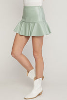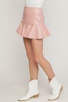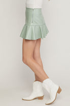 Introducing our Stella Skirt, a solid faux leather mini with a tiered design. Featuring a convenient side zipper closure, this skirt is both stylish and functional. Lined and made of lightweight material, it's perfect for any occasion.