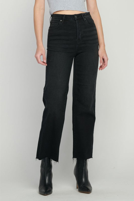 Meet your new go-to jeans: a sleek black high-waisted denim with a wide, straight-leg silhouette that flatters every figure. These jeans elongate your legs, cinch your waist, and bring that effortlessly cool vibe to any outfit. Dress them up with heels and a blazer or keep it casual with sneakers and a tee—either way, they’re a closet staple you’ll reach for on repeat.