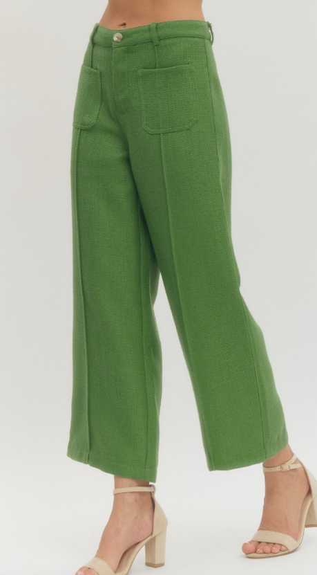 Tailored yet effortless, these solid wide leg pants are designed with a flattering, modern silhouette that moves with ease. Front patch pockets add a functional, contemporary touch, while belt loops and a classic zip fly with button closure provide a secure, polished fit.