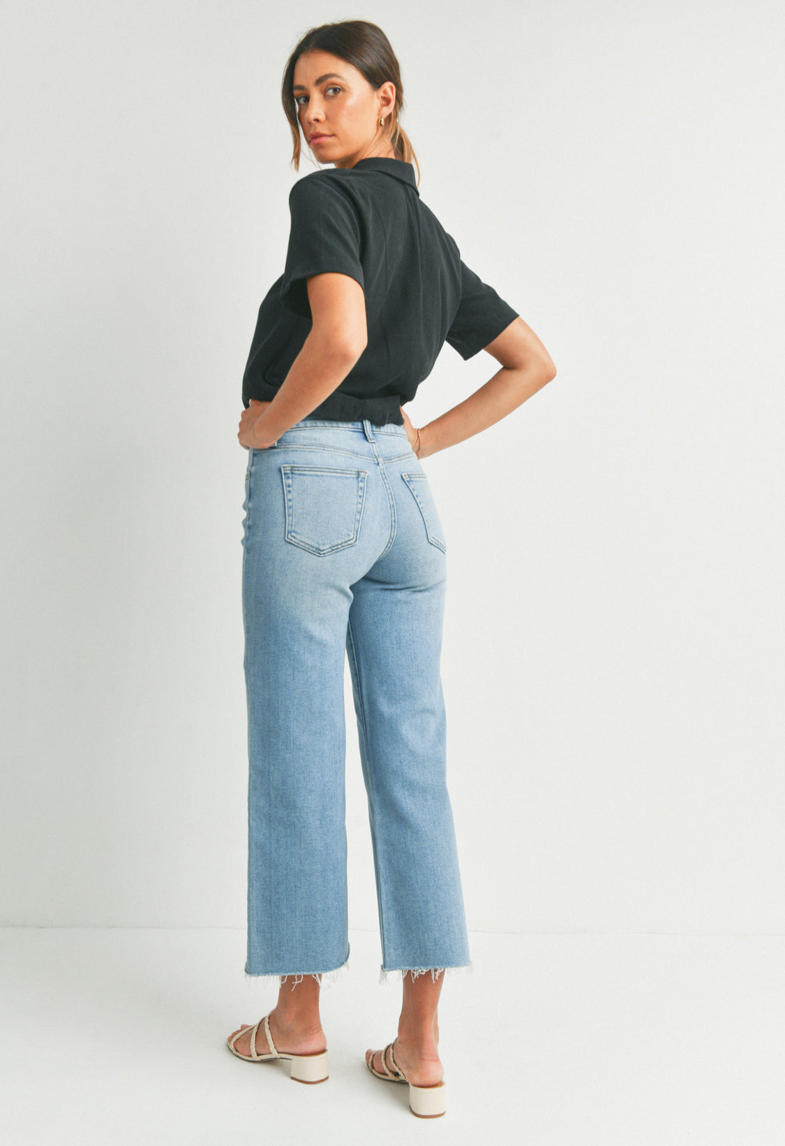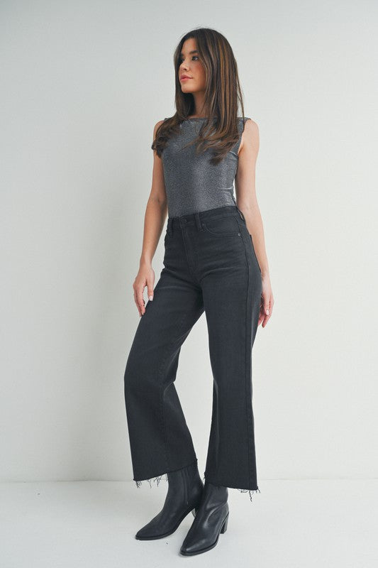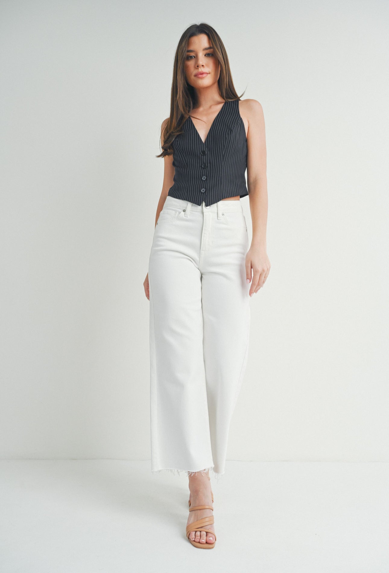Expertly crafted for both style and comfort, the Wesley Slim Wide Leg Jeans offer a flattering high rise fit and just the right amount of stretch. Available in classic black and crisp white, these jeans are the perfect addition to any wardrobe for a sleek and stylish look.