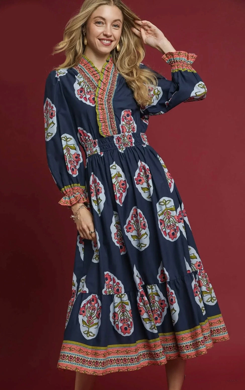 Great fit! Love the flowy skirt and fitted bodice.