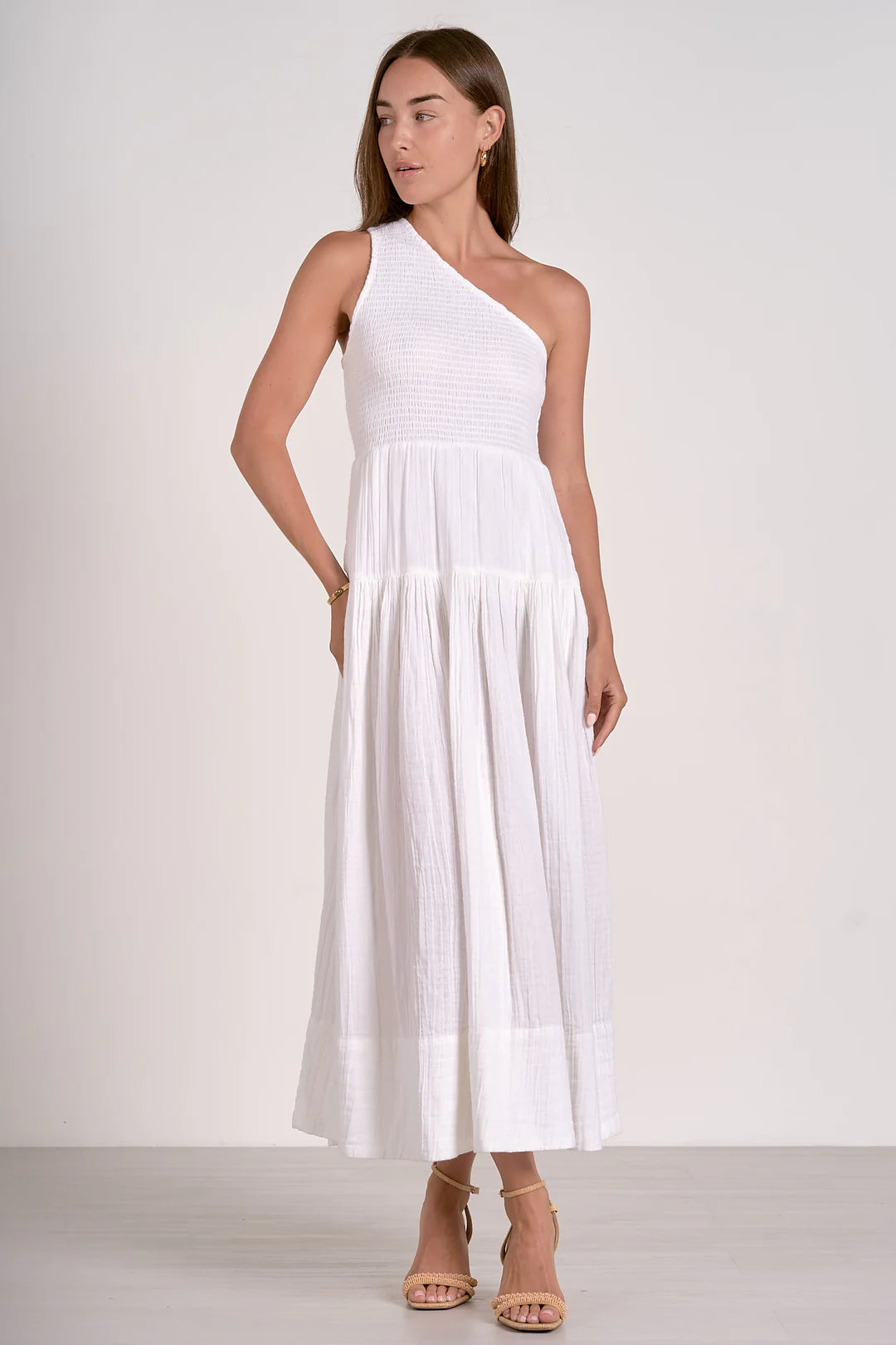 Breezy, effortless, and made for sunshine—the Beachside Maxi Dress is your go-to for seaside strolls and summer soirées. This elegant one-shoulder silhouette in crisp white flows gracefully with every step, offering both comfort and coastal charm. Lightweight and flattering, it’s perfect for barefoot walks on the sand or dressed up with wedges for a sunset dinner.