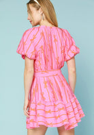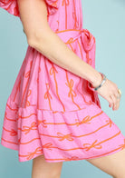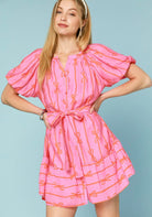 Sweet and sophisticated, this Bow Print Flutter Button-Down Dress is the perfect blend of playful and polished. Designed with a two-tone bow print, it features puff short sleeves, a flattering button-down front, and a belt tie waist that adds the perfect feminine touch. Light, flowy, and full of charm — it’s made for days when you want to feel effortlessly put together.