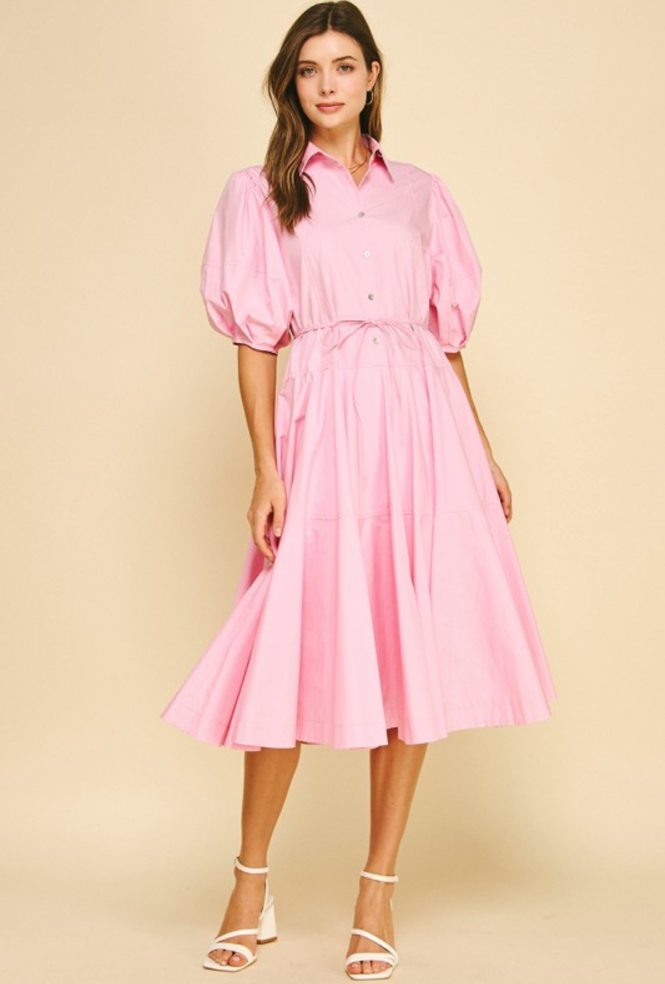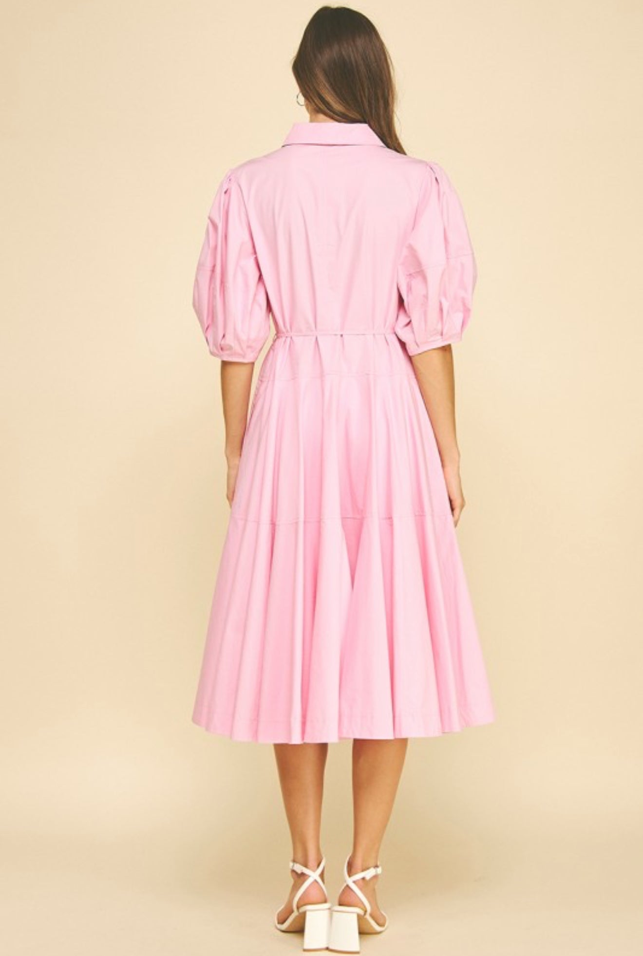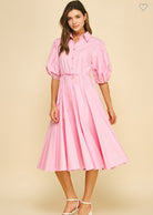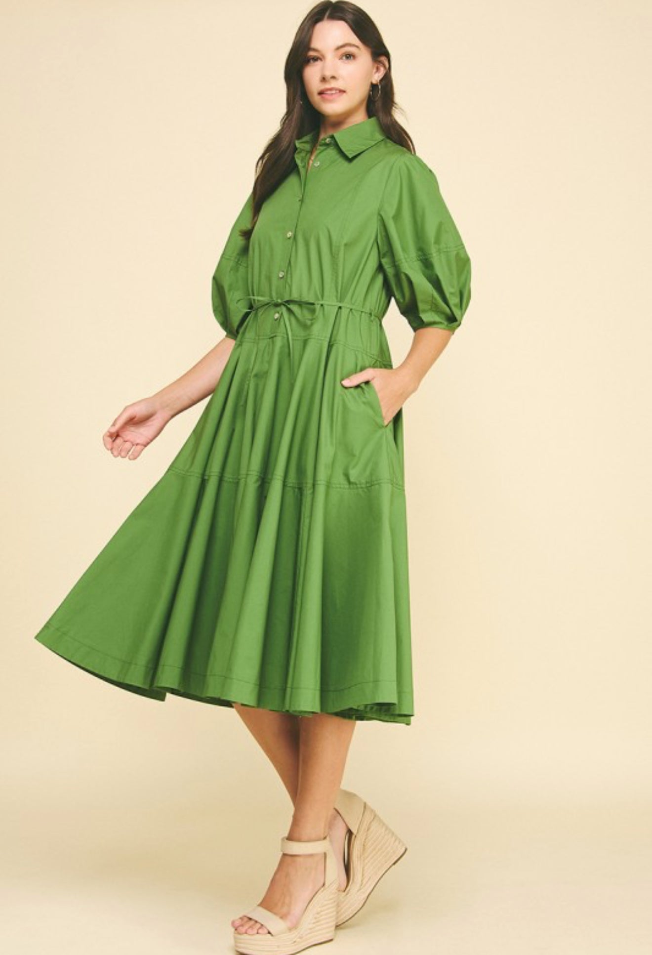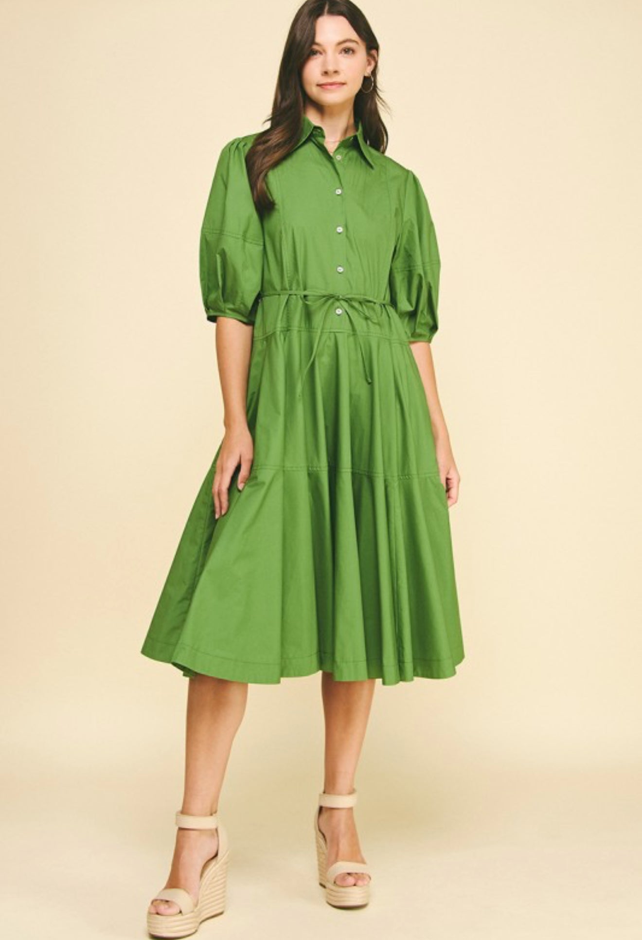 Our Button-Down Tiered Midi Dress is the effortless statement piece your wardrobe has been waiting for. Available in a gorgeous green and a playful pink, this dress features a full button-front design, a flattering tie-waist to define your shape, and soft tiered panels that create beautiful movement with every step.