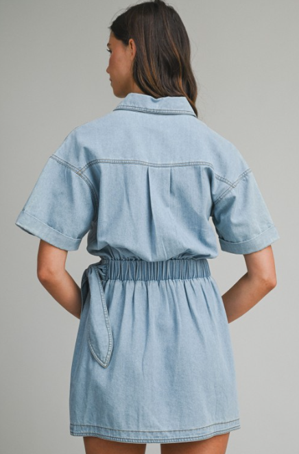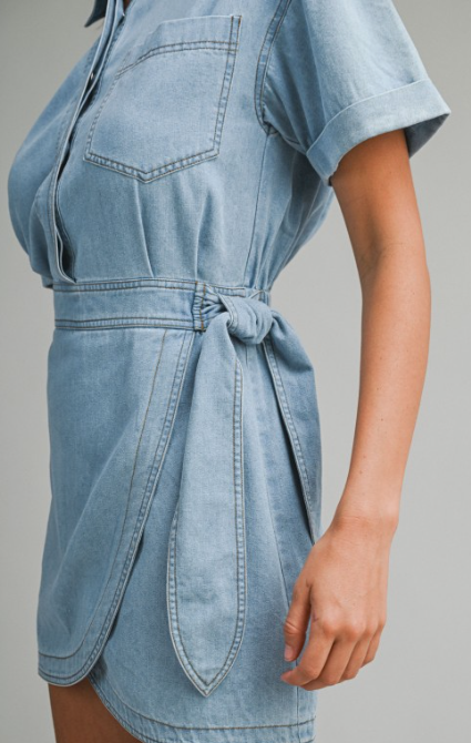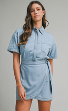 Step into effortless cool with this denim wrap skirt mini dress, a perfect blend of casual charm and modern edge. Crafted from soft, structured denim, this mini dress features a flattering wrap-style skirt that ties at the waist, creating a customizable fit that highlights your natural shape. The denim fabric adds a timeless, laid-back vibe, while the mini length offers a flirty, youthful touch. Versatile enough for daytime outings or weekend adventures, this piece pairs beautifully with sneakers, boots, or strappy sandals for year-round style.