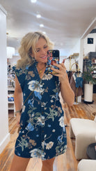 Feminine meets casual cool in this floral print denim mini dress. Designed with flutter sleeves and a ruffle-trimmed V-neck band collar, it’s full of playful charm. The button-front closure and handy side pockets keep it easy and effortless, while the lightweight woven fabric makes it perfect for all-day wear. Unlined and non-sheer, it’s the perfect piece to dress up or down.