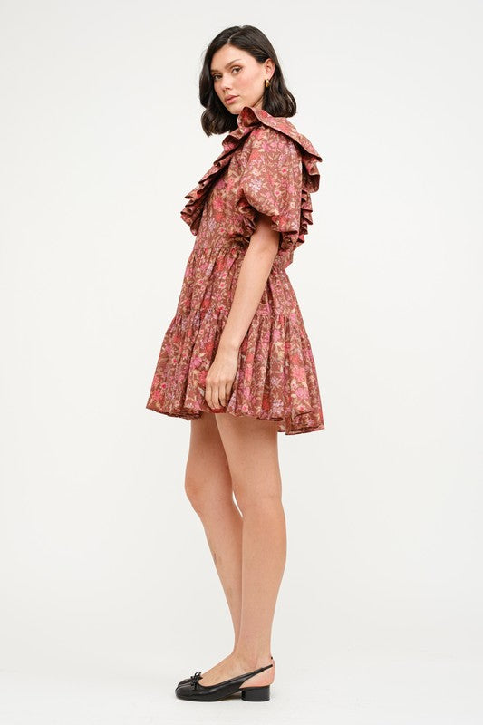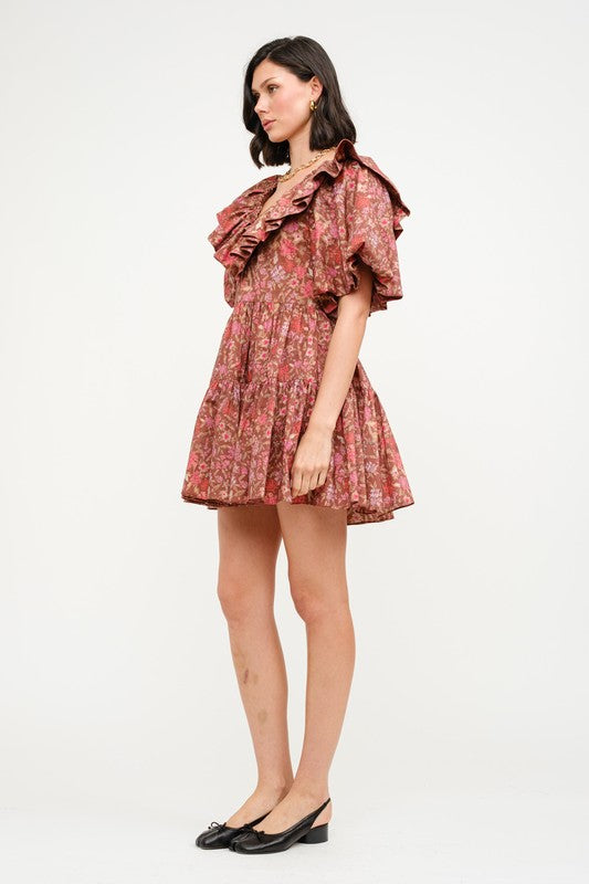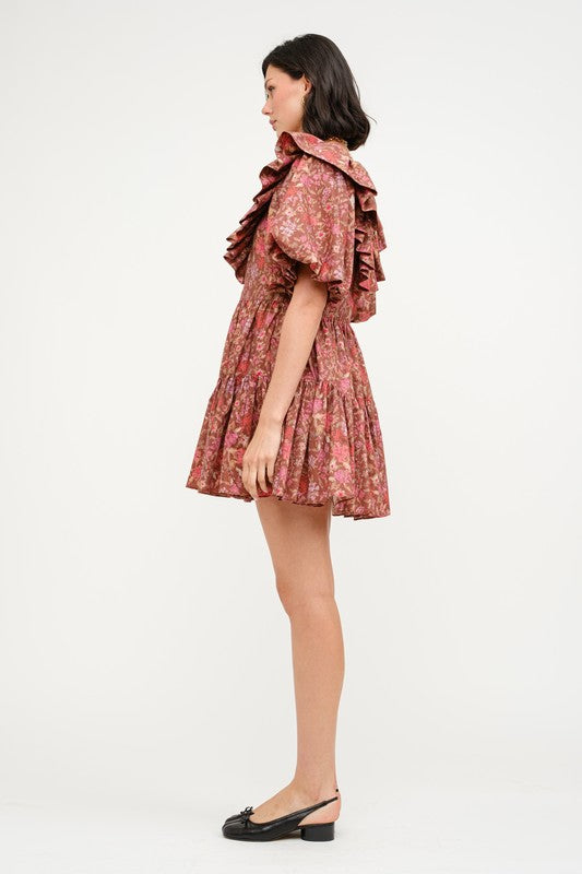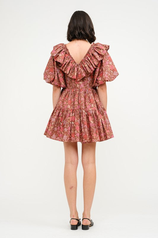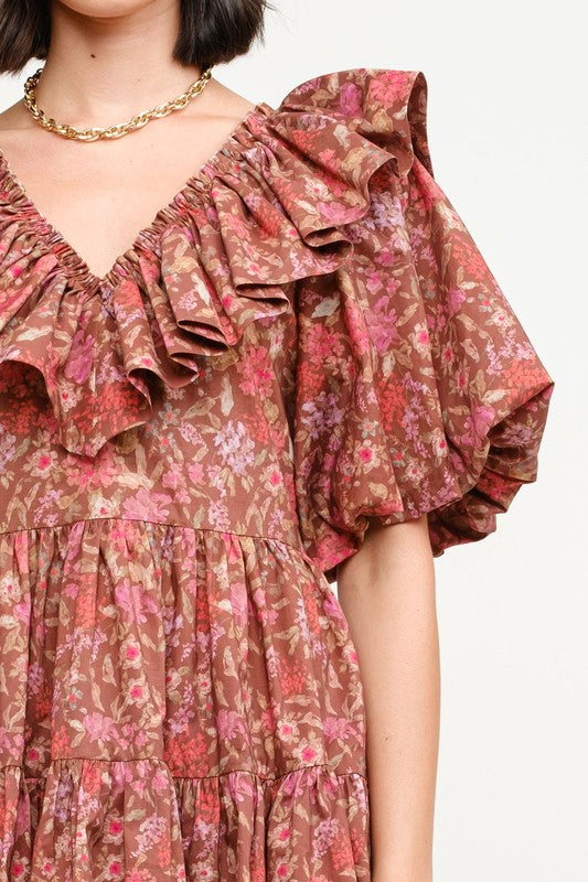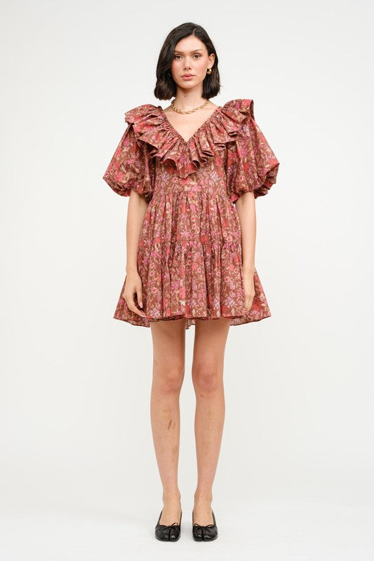 Get ready to bloom in style with our floral printed ruffle v neck dress! This playful dress features a flirty ruffled neckline and a vibrant floral print, perfect for adding some fun to your wardrobe. Say yes to fashion and fun with this quirky dress!