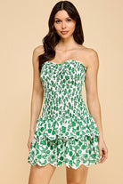 This printed strapless tube dress is a total knockout—fun, flirty, and ready to turn heads. With a smocked bodice for the perfect fit, low-hip placement for that laid-back vibe, and embroidered details that bring the charm, it’s finished with a ruffled hem that adds just the right amount of flirt. Whether you’re cheering on your team or heading out for the night, this dress is your game day to girls’ night go-to.
