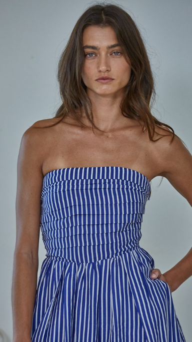 Turn heads in this effortlessly elegant striped maxi dress, designed with a flattering strapless tube neckline and a softly flared silhouette. Crafted from a lightweight woven blend of rayon, polyester, and nylon, it drapes beautifully while remaining comfortable and breathable.