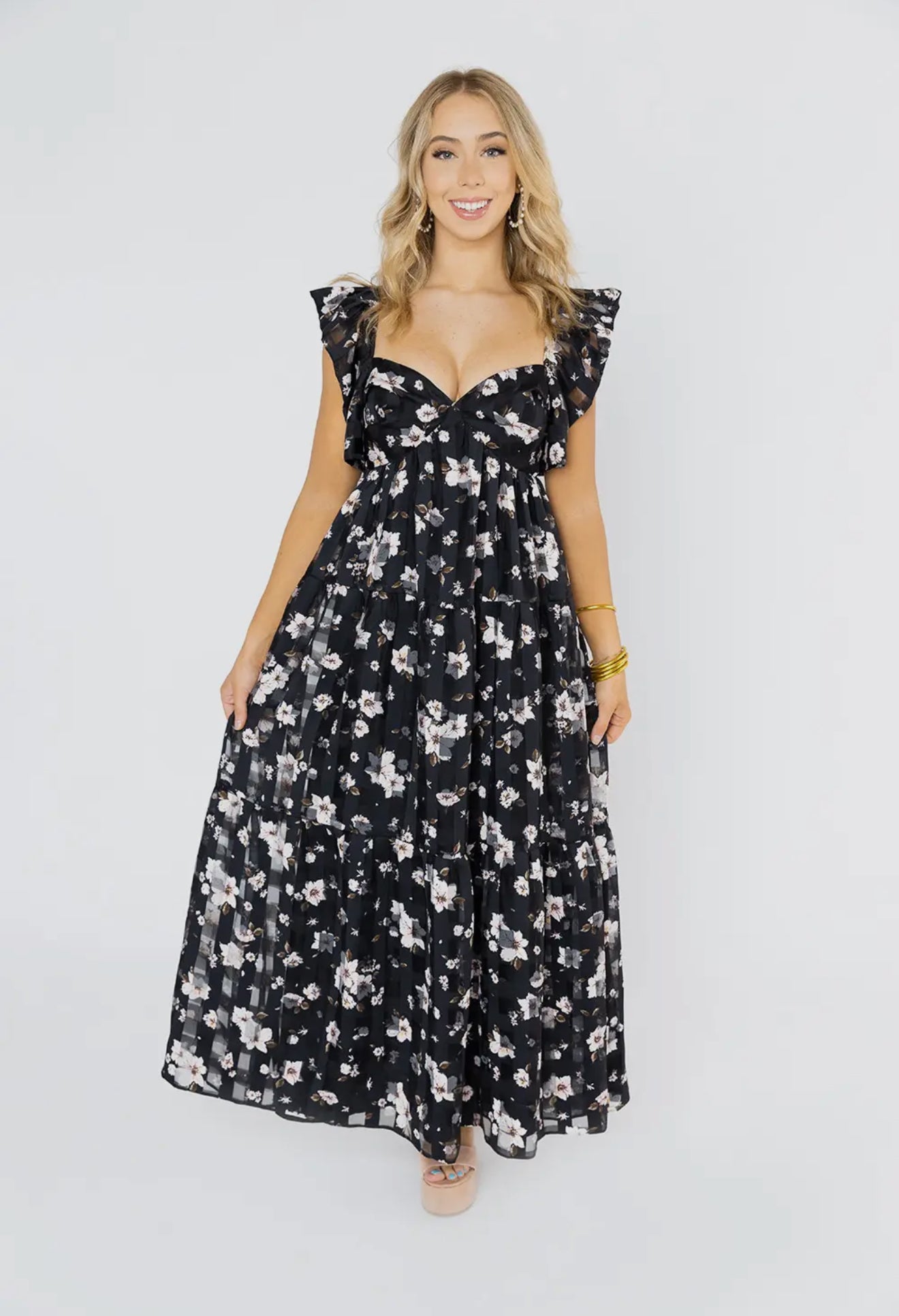 The Kate Dress is designed to make women feel fun and flirty! The tie strap back and small smocked back panel will have you at your best no matter the occasion. Plus, the sweetheart neckline and flutter straps will make it your customers favorite dress! Get this sweet fall floral maxi dress in your store ASAP!