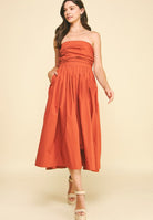 Meet the effortlessly flattering midi you’ll reach for again and again. This sleeveless dress features soft shirring detail that drapes beautifully over the body, creating a feminine, elongating silhouette. Designed with a comfortable fit and an easy midi length, it moves with you—perfect for dressing up or keeping casual. Lightweight, breathable, and endlessly versatile, this piece is your go-to for brunch dates, church, showers, and everything in between.