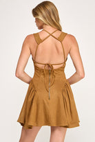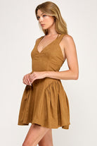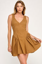 This suede camel-colored mini dress is rodeo-ready and effortlessly chic. Designed with a flattering V-neckline and a classic mini length, it brings just the right mix of Western flair and modern style. The soft suede finish gives it that rich, textured look that’s perfect for standing out in the crowd.