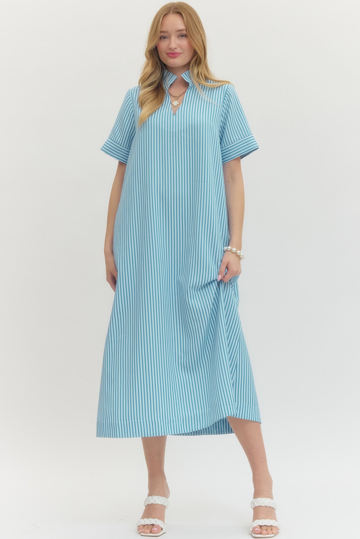 This white and blue striped maxi dress is the definition of effortless warm-weather style. Designed with a flattering, easy silhouette, it flows beautifully for all-day comfort while keeping a polished look. The classic stripe pattern adds a fresh, timeless feel that’s perfect for spring days, beach vacations, or casual outings. Lightweight and breezy, this maxi dress transitions seamlessly from daytime exploring to sunset dinners with just a change of shoes.