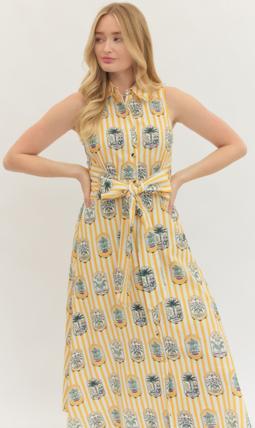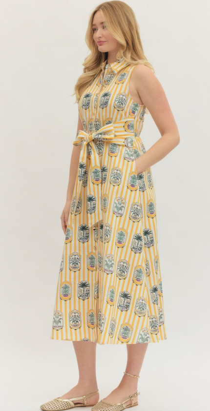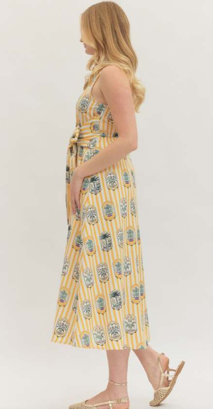 Effortlessly feminine and flattering, this printed sleeveless midi dress is a timeless addition to your wardrobe. Designed with a graceful midi length, it offers an easy silhouette that works for everything from daytime outings to special occasions.