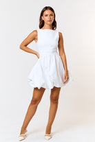 Get ready to steal the spotlight in this stunning sleeveless bubbled mini dress! With a playful scoop back and a crisp white hue, this dress is pure elegance with a hint of fun. The bubbled silhouette adds that extra flair, making it perfect for twirling the night away at any special occasion. It’s chic, flirty, and guaranteed to have all eyes on you!