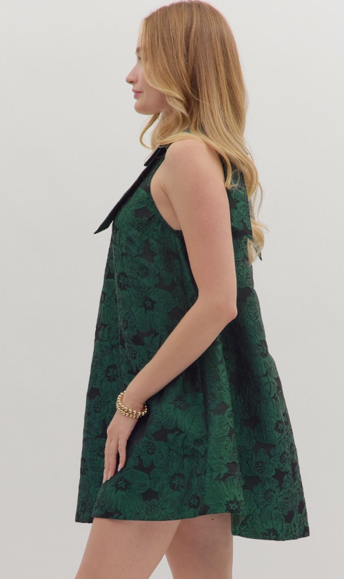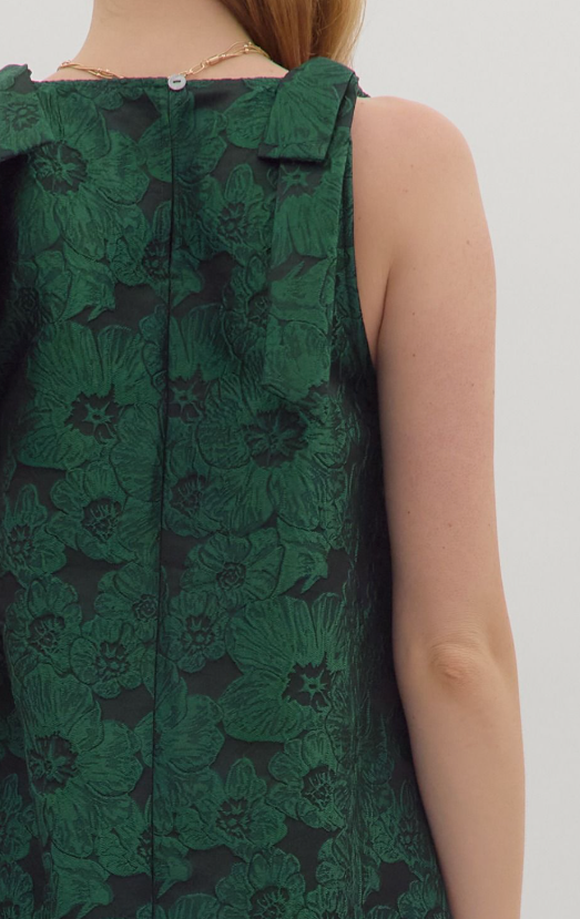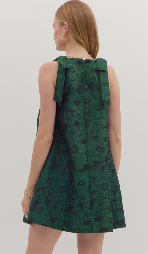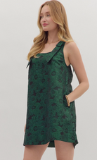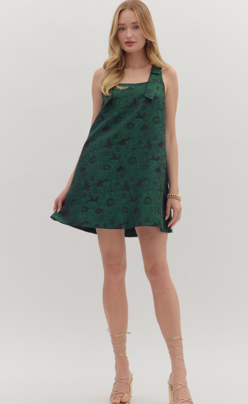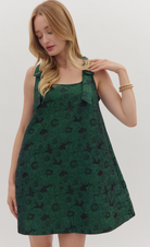 The Evergreen Grace Dress is made for holiday moments and merry memories! This sleeveless mini dress features a charming floral print in rich hunter green, complete with sweet bow-tied straps and a button closure at the back for a delicate touch. Side pockets add a hint of practicality while keeping it effortlessly cute. Whether you’re dressing it up for a festive gathering or keeping it casual with boots and a cardigan, this dress is pure holiday perfection.
