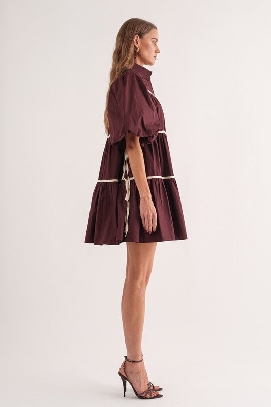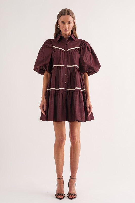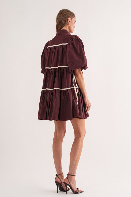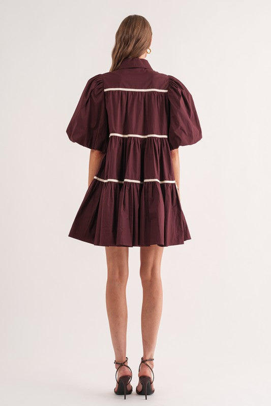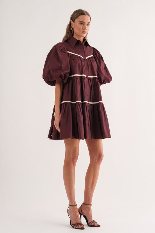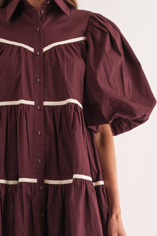 Meet your new favorite go-to: the maroon poplin tiered shirt dress that’s as fun as it is flirty! This dress combines the classic shirt dress look with a playful twist, featuring flouncy tiered layers that add movement and a pop of personality. In a rich maroon hue, it’s the perfect blend of bold and breezy, and the soft poplin fabric feels just as good as it looks. Wear it with sneakers for a cute daytime look or add heels to turn up the charm—this dress is all about effortless style with a wink!