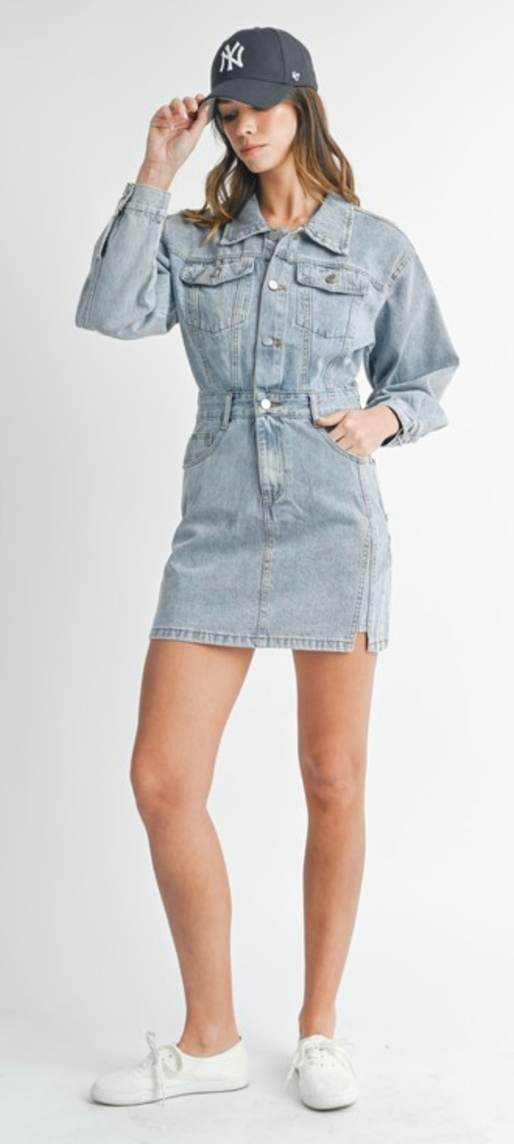 Indulge in effortless style and comfort with The Tori Dress. This stunning long sleeve denim dress features a button enclosure for easy wear and a touch of elegance. Embrace a chic and versatile look for any occasion!