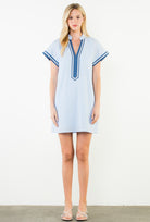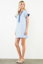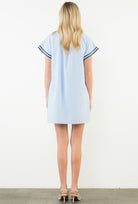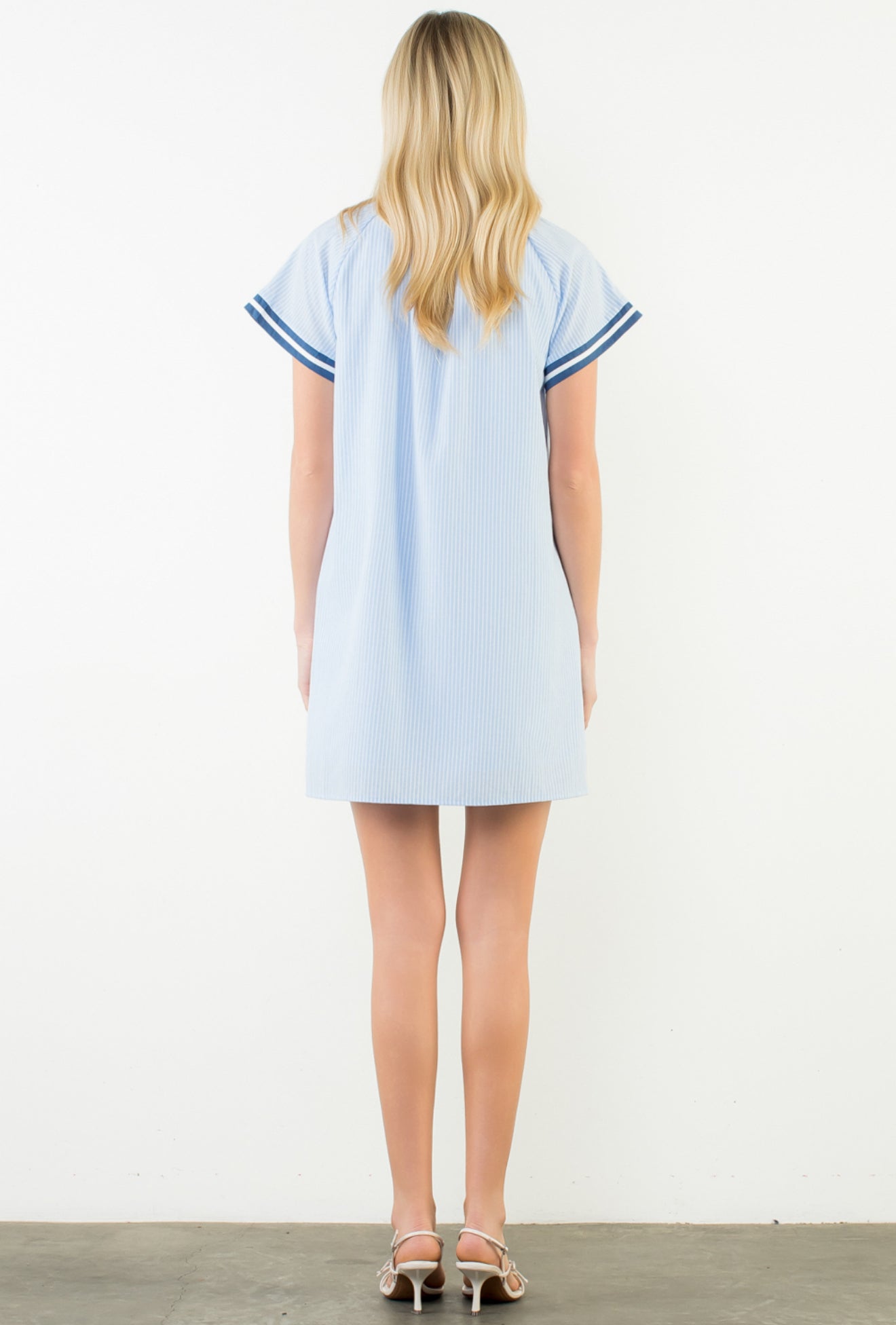A breezy blue sleeveless mini dress featuring a fresh striped pattern and classic THML detailing. Lightweight, effortless, and flattering, this easy throw-on style brings a chic, coastal feel to your everyday look. Perfect for warm days and simple to dress up or keep casual.