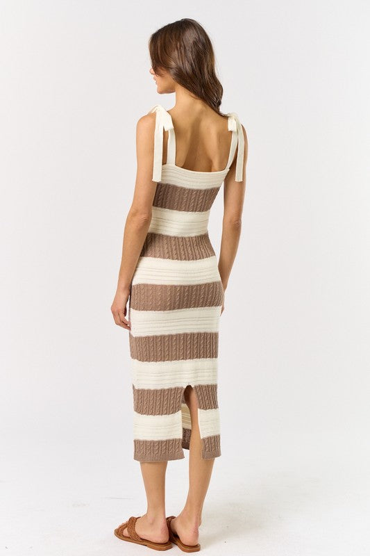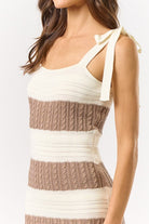 Sweet meets sophisticated in this cream and taupe contrast sweater dress, featuring the most darling bow straps for a feminine twist. The soft, stretchy knit hugs you just right while the neutral tones keep it chic and versatile.