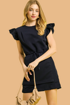 The Luxeknit Ruffle Sleeve Drawstring Mini Dress is an effortless blend of comfort and chic. Designed with a classic crew neckline finished in ribbed trim, this dress gets a playful touch from its short ruffle sleeves. The adjustable drawstring waist allows you to customize your fit, while side pockets add everyday functionality. Crafted in a cozy knit and unlined for lightweight wear, it’s the perfect throw-on piece that keeps you stylish and comfortable all day long.