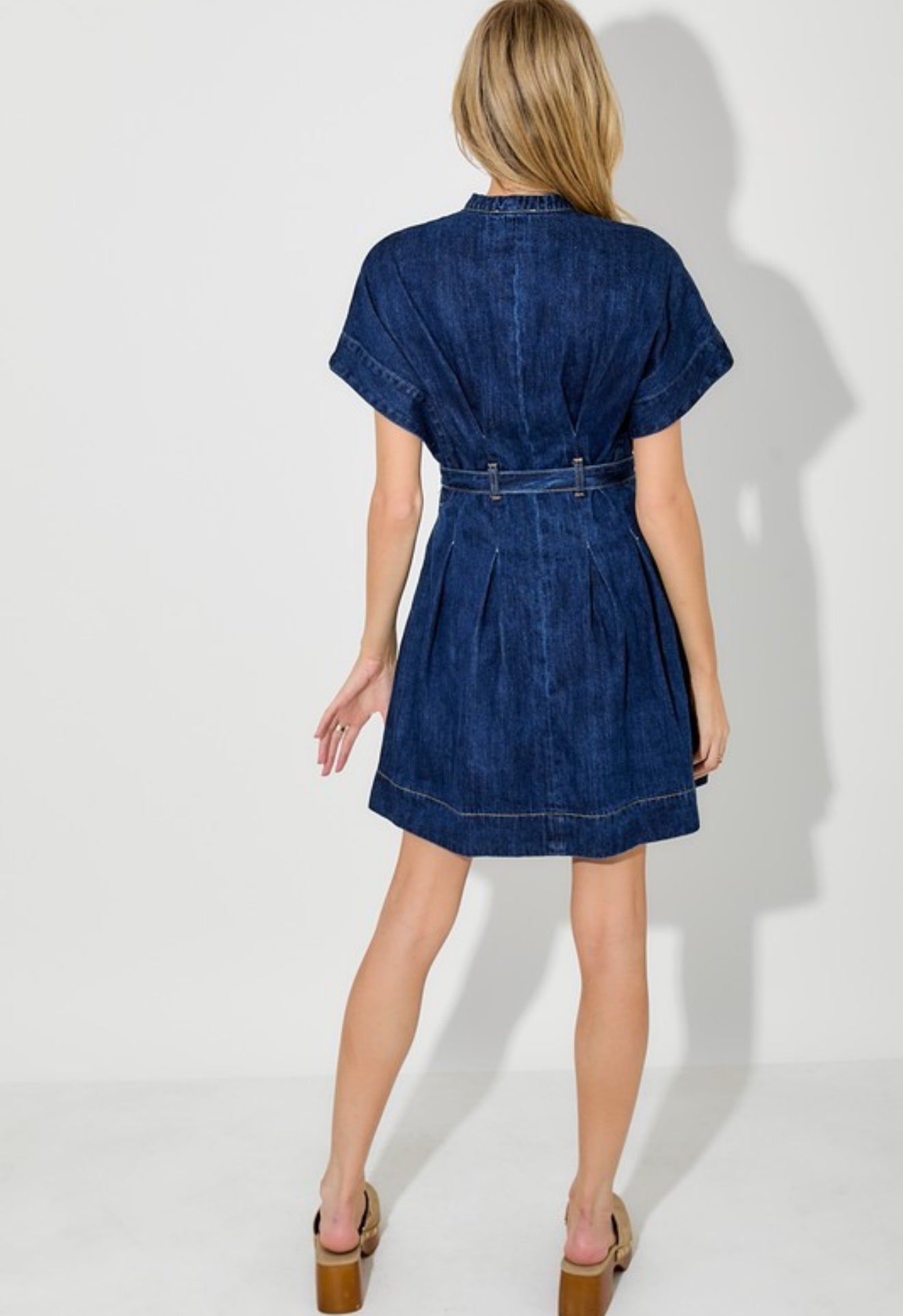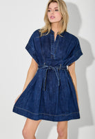 This short sleeve denim dress is an effortless must-have with endless styling potential. Designed with a flattering tie waist and a slightly longer cap sleeve, it gives just the right amount of coverage while still feeling feminine and fun. The soft, lightweight denim makes it comfortable for all-day wear, while the structured shape keeps it polished and put-together.