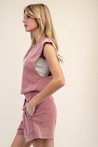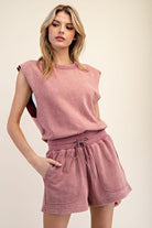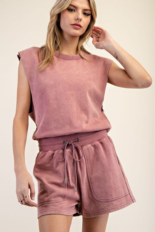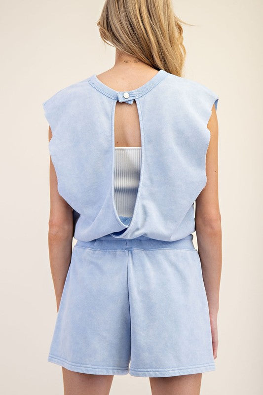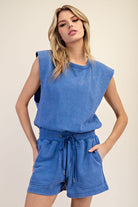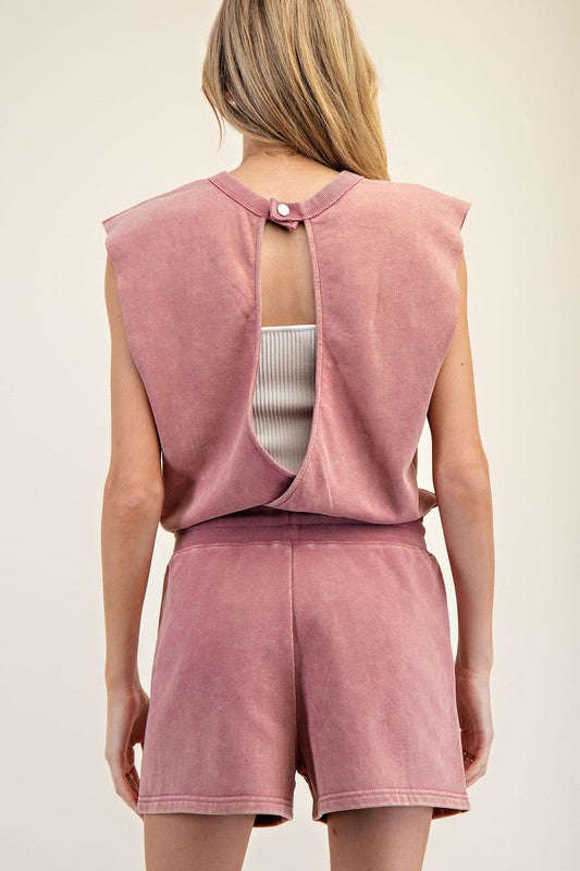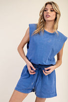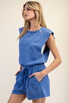 Introducing our new Mineral Washed Drawstring Romper, available in three stunning colors. Made with a unique mineral wash technique, this romper is both stylish and comfortable. The adjustable drawstring allows for a perfect fit, while the mineral wash adds a touch of luxury. Elevate your summer wardrobe with this must-have piece.