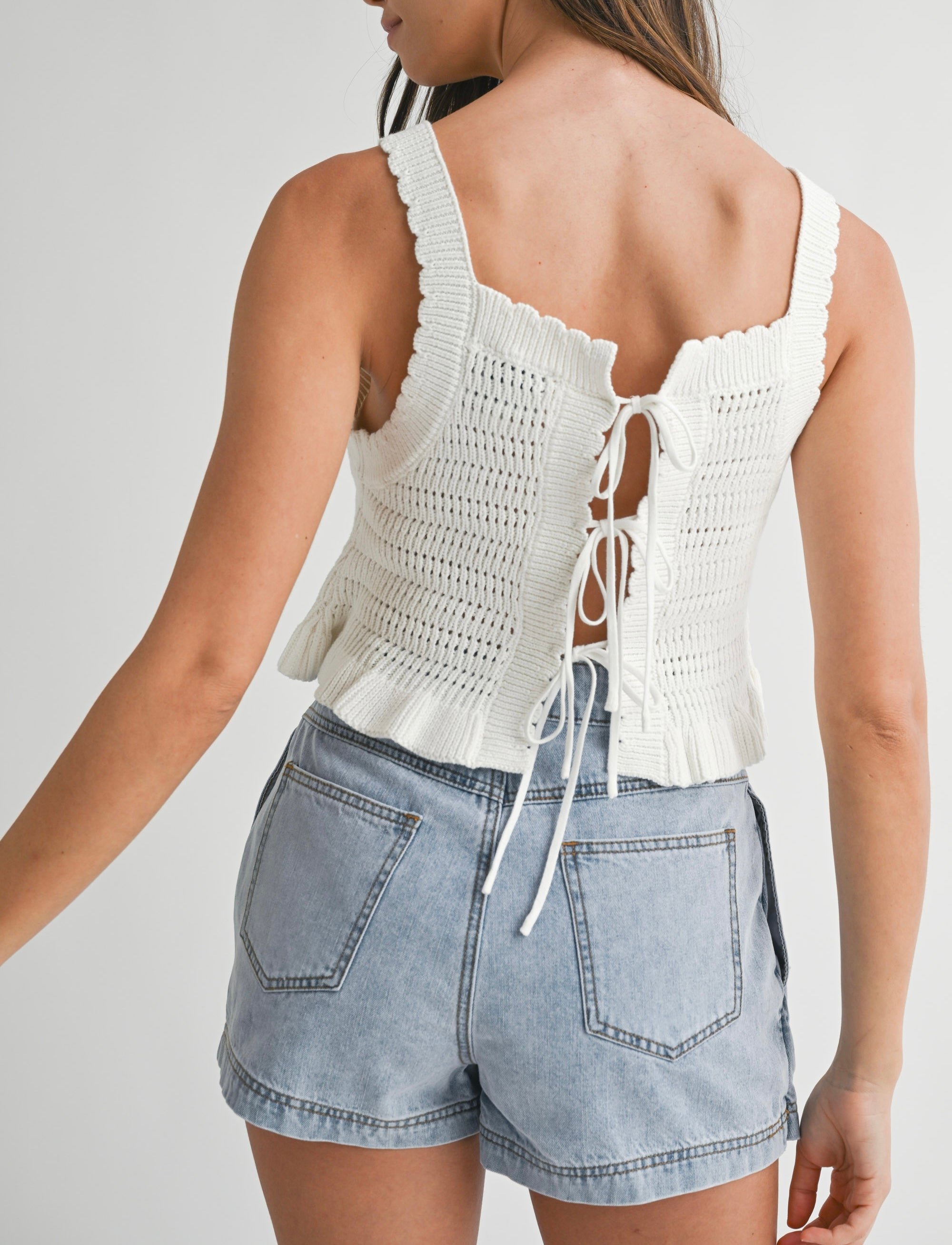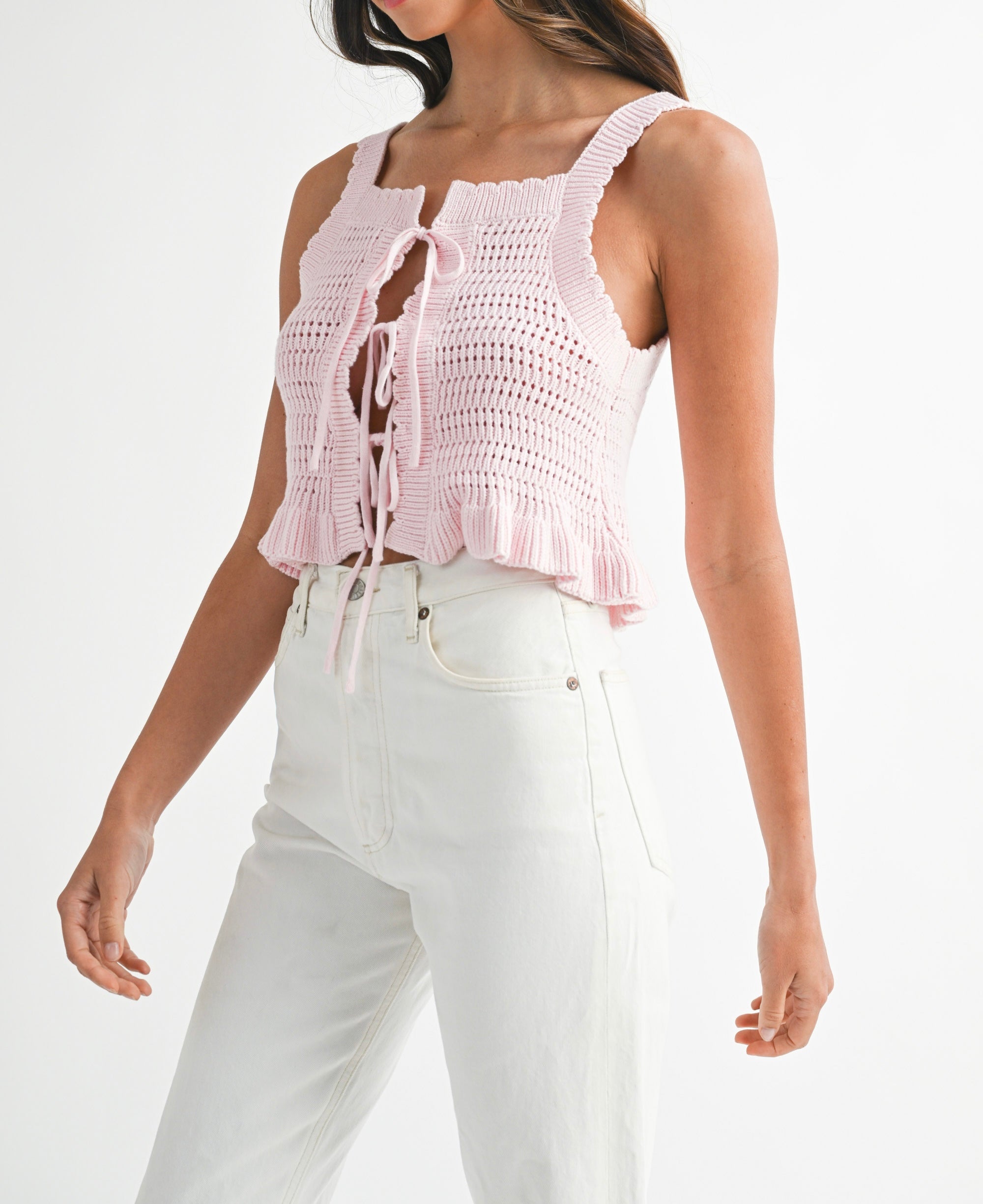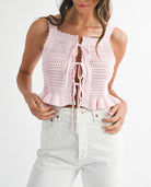 Twist it your way—this knit sweater top is totally reversible with adjustable ties you can style in the front or back. Whether you’re going for a flirty bow in the front or a sleek surprise in the back, this piece gives you double the looks with half the effort. Cozy, cute, and endlessly versatile—yes, please.
