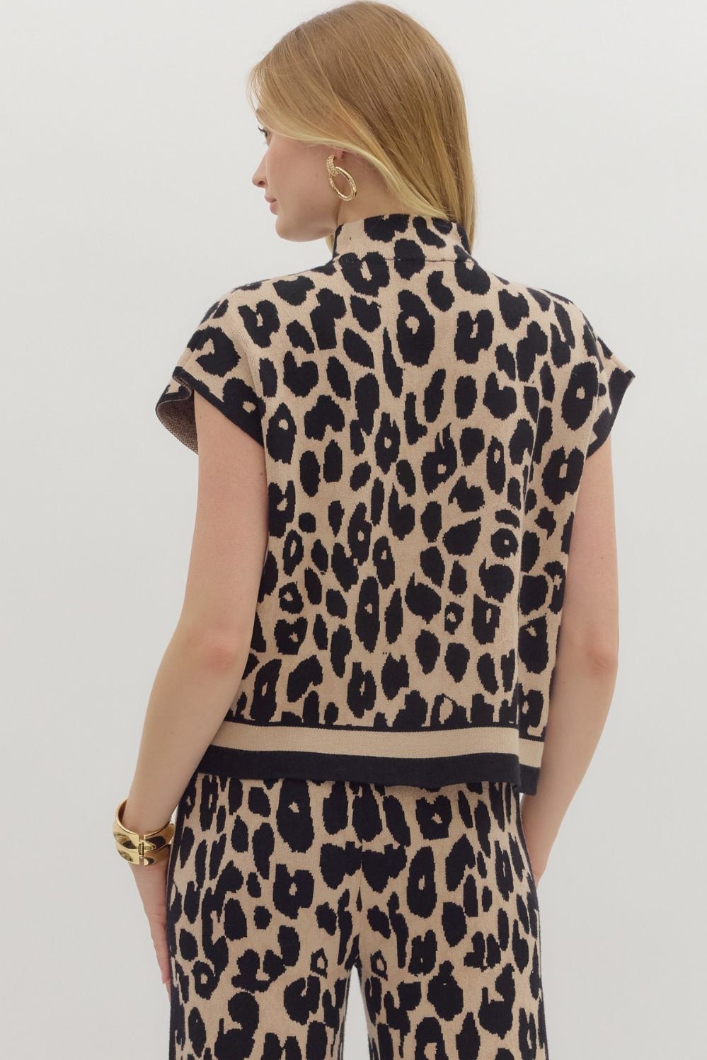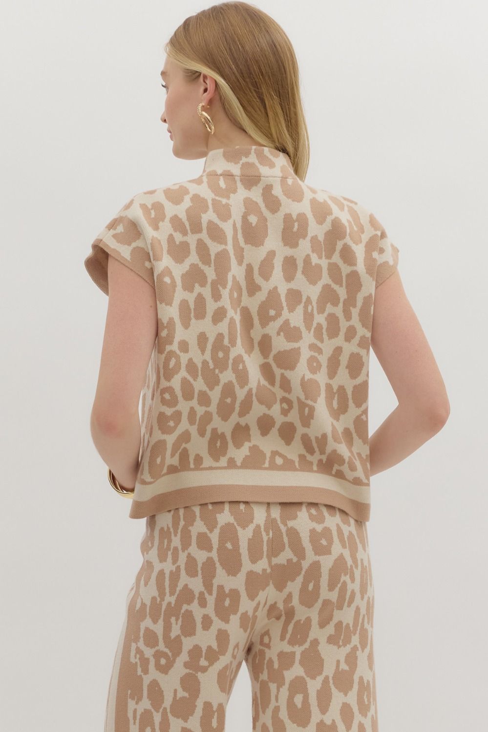 Fierce meets cozy in this animal print mock neck sweater knit pullover. Crafted from a lightweight, non-sheer knit, it’s the perfect balance of bold and effortless. The mock neckline adds a touch of polish, while the easy pullover style keeps it comfortable and chic. A statement piece that pairs just as well with denim as it does with sleek trousers or a skirt.