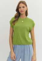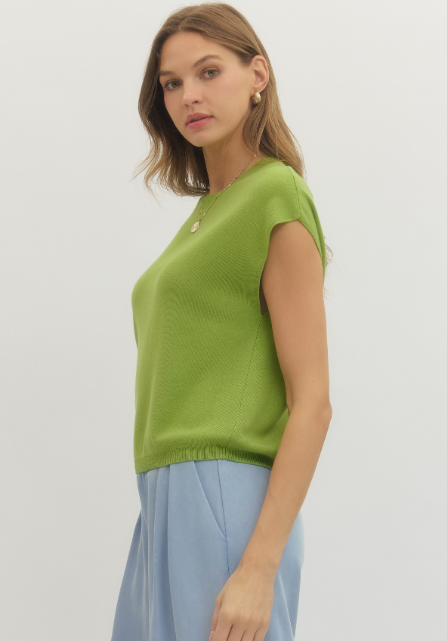 Stay effortlessly stylish and comfortable in this green lightweight knit top, featuring trendy cut-off sleeves for a relaxed, modern vibe. Crafted from soft, breathable material, this top drapes beautifully for an easy, flattering fit. Perfect for layering or wearing on its own, it pairs seamlessly with jeans, shorts, or skirts for casual daytime looks or laid-back evenings. Add a pop of fresh, versatile color to your wardrobe with this must-have knit top.