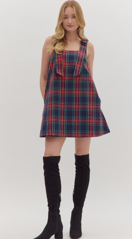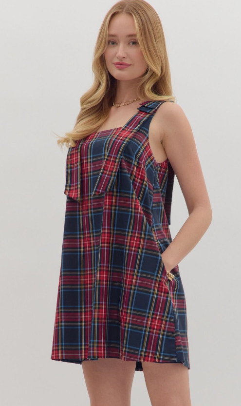 The Parker Plaid Dress is made for all your merry occasions! This plaid sleeveless mini dress features the sweetest bow-tie straps, side pockets, and a fully lined fit that feels as good as it looks. Whether you’re heading to a Christmas party or a festive dinner, pair it with black boots or nude heels for a look that’s effortlessly charming and perfectly holiday-ready.