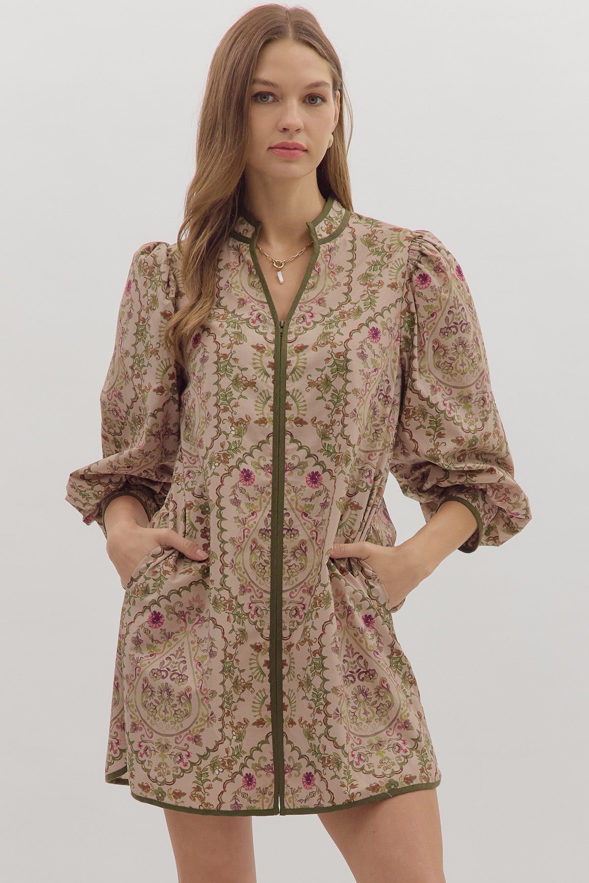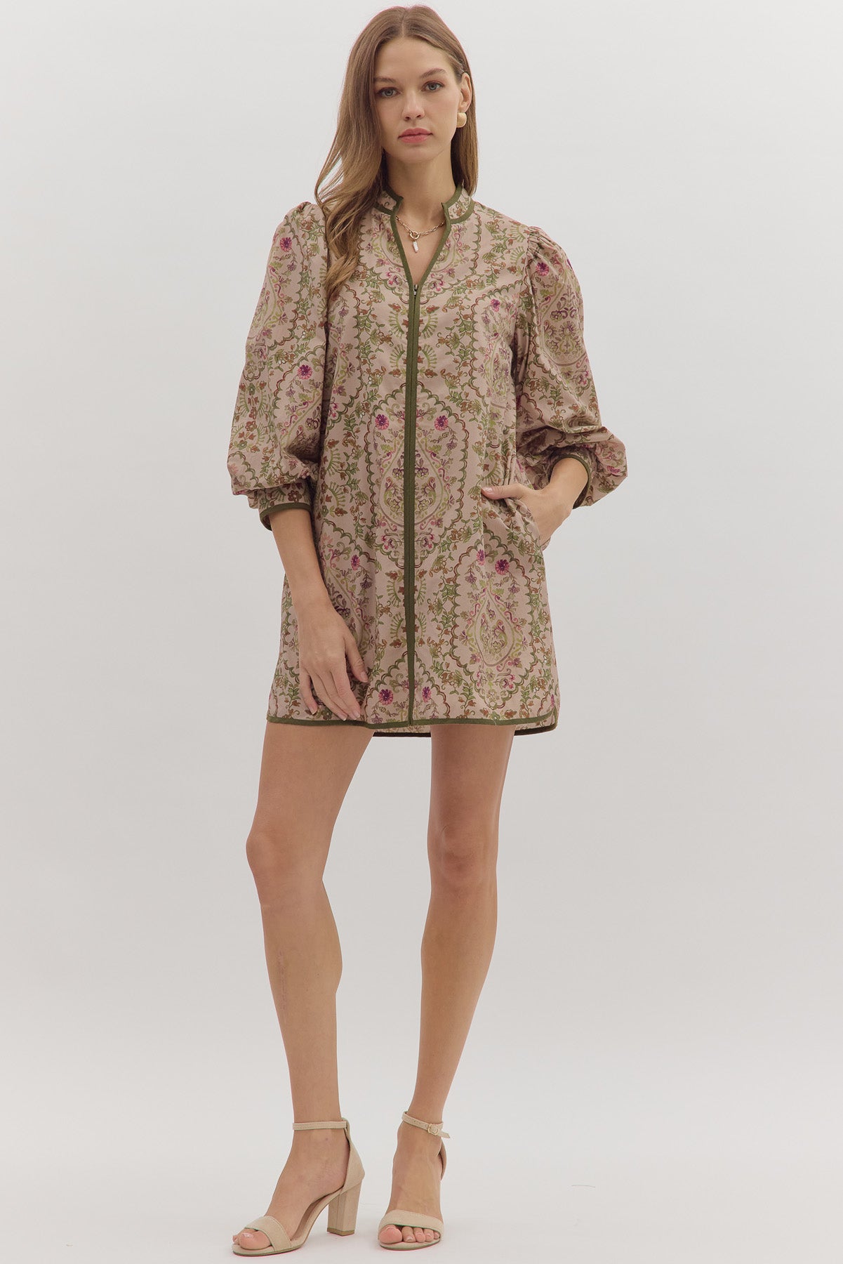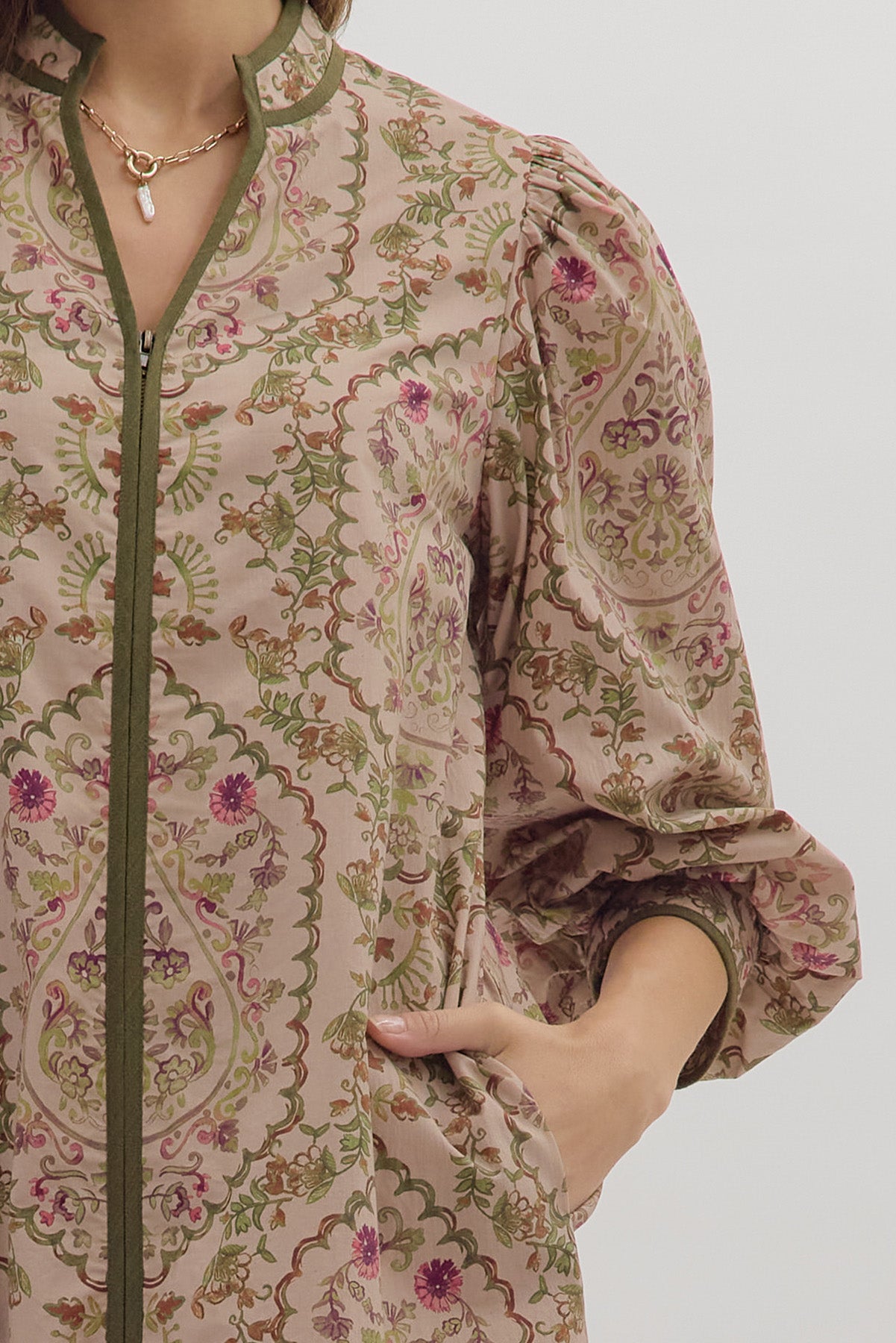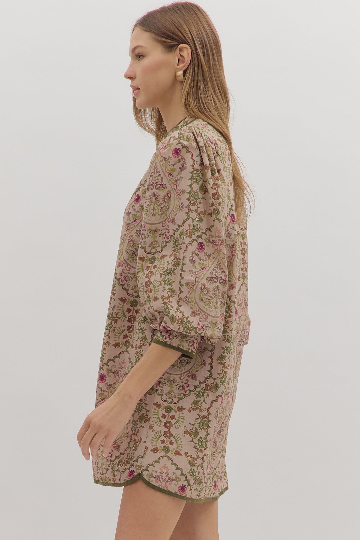 The Raegan Dress brings playful charm to your fall wardrobe with its delightful puff sleeves and vibrant floral pattern. Fun detailing adds a whimsical touch, making it the perfect dress to embrace the season with style and comfort.
