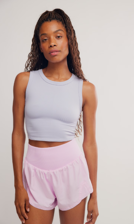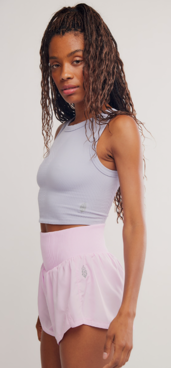 Seize the run in these so-flattering shorts, featuring a durable, water-resistant fabrication, built-in briefs and a knit high-rise waistband.