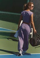 - Perfect for workouts and daily outing, the FP Movement™ Hot Shot Crossover Set is effortlessly comfy. Featuring a super soft fabrication and perfectly lived-in look. This relaxed fit set has ankle length pant, cropped muscle tee top with seaming detail; ankle length pant with high-rise waist, wide leg, elasticated waistband and cuffs. It comes with crossover detail on top, ribbed collar, and side seam pockets.