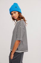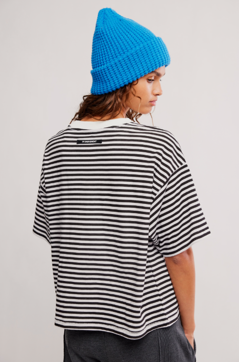 A relaxed, effortlessly cool essential with a modern edge. This black-and-white striped tee features a classic crew neckline with contrast trim and an easy oversized silhouette for all-day comfort. The soft, breathable fabric drapes naturally, while the slightly dropped shoulders and roomy sleeves give it a laid-back streetwear feel.