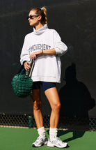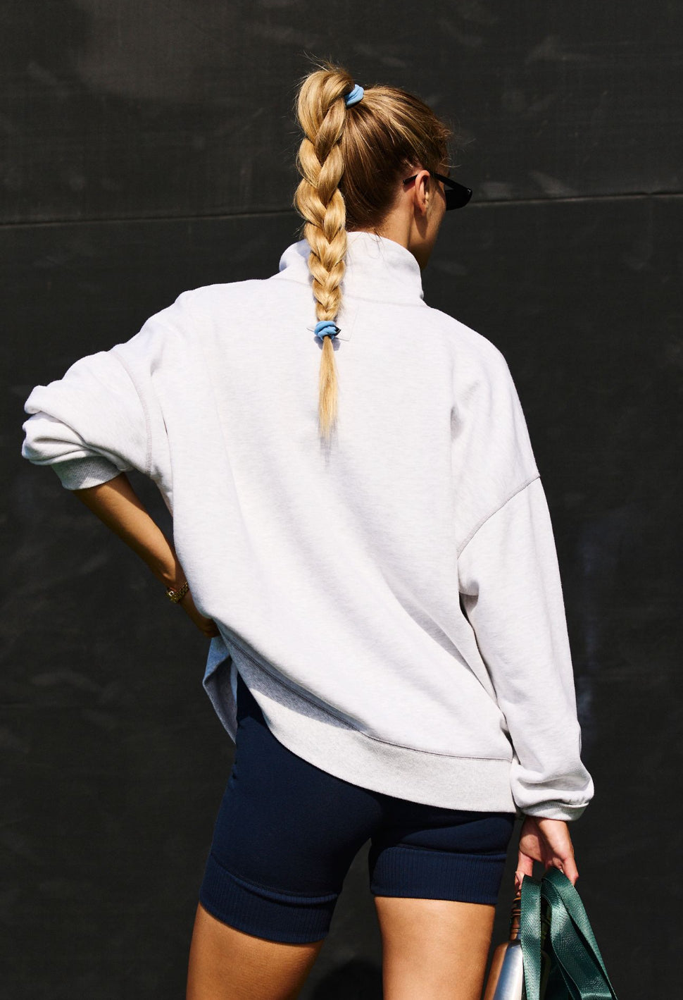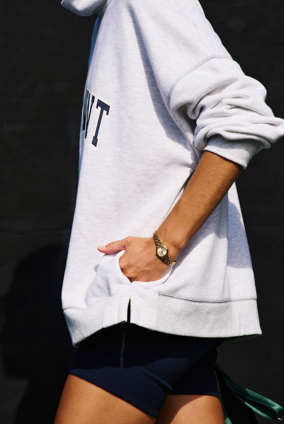 Fit: Pullover: Oversized silhouette; Shorts: High-rise, slim biker fit