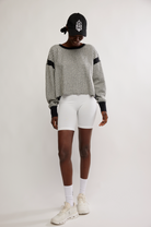 Perfect for going to or from a workout, this layer features a soft fabrication, slouchy dolman crop and flattering back opening.