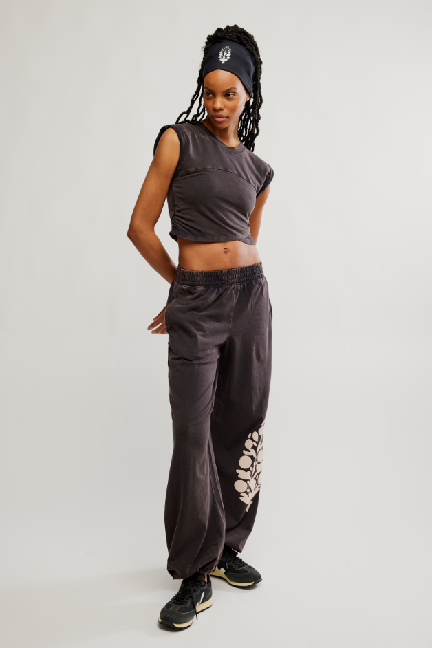 Effortlessly comfy, this set is easy to throw on before or after workouts, featuring a super soft fabrication and perfectly lived-in look with defined FP Movement buti logo detailing and printing throughout for an added special touch.