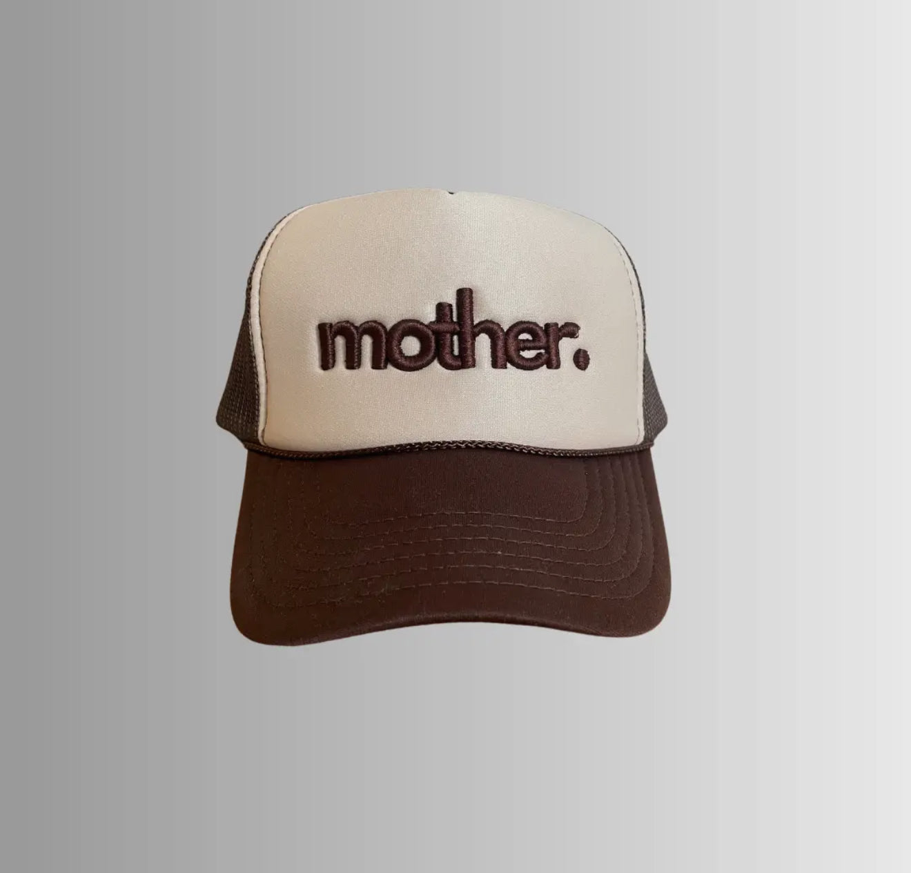 A standout accessory made just for moms: this structured trucker cap boasts a bold “mother.” embroidery on its foam front, supported by airy mesh and topped with a slightly curved brim. Stylish, adjustable, and purposeful—plus, select options give back to moms in need. The blend of fashion-forward design and intentional messaging makes it the go-to hat that’s as meaningful as it is on trend. As seen in Vogue Magazine