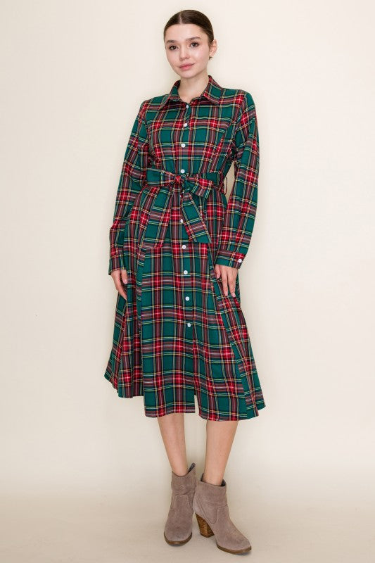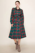 This green plaid midi dress is giving all the holiday vibes! 🎄✨ Designed with a flattering tie waist belt, it cinches perfectly for a feminine silhouette while keeping things comfy and chic. The classic plaid pattern feels festive yet timeless, making it a go-to piece for Christmas gatherings, holiday parties, or even a cozy dinner at home. Pair it with boots for a casual holiday look or dress it up with heels and sparkly jewelry for a party-ready outfit.