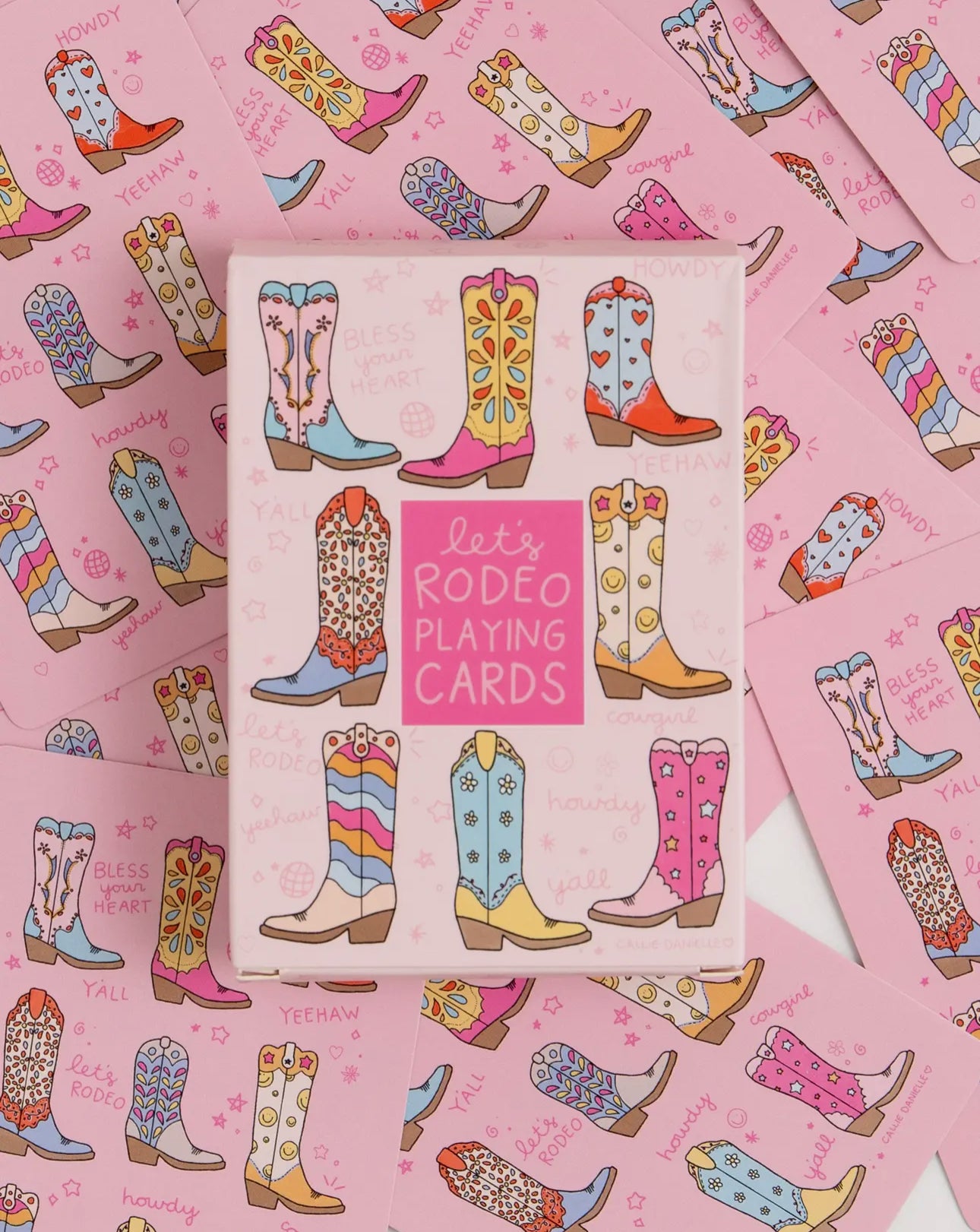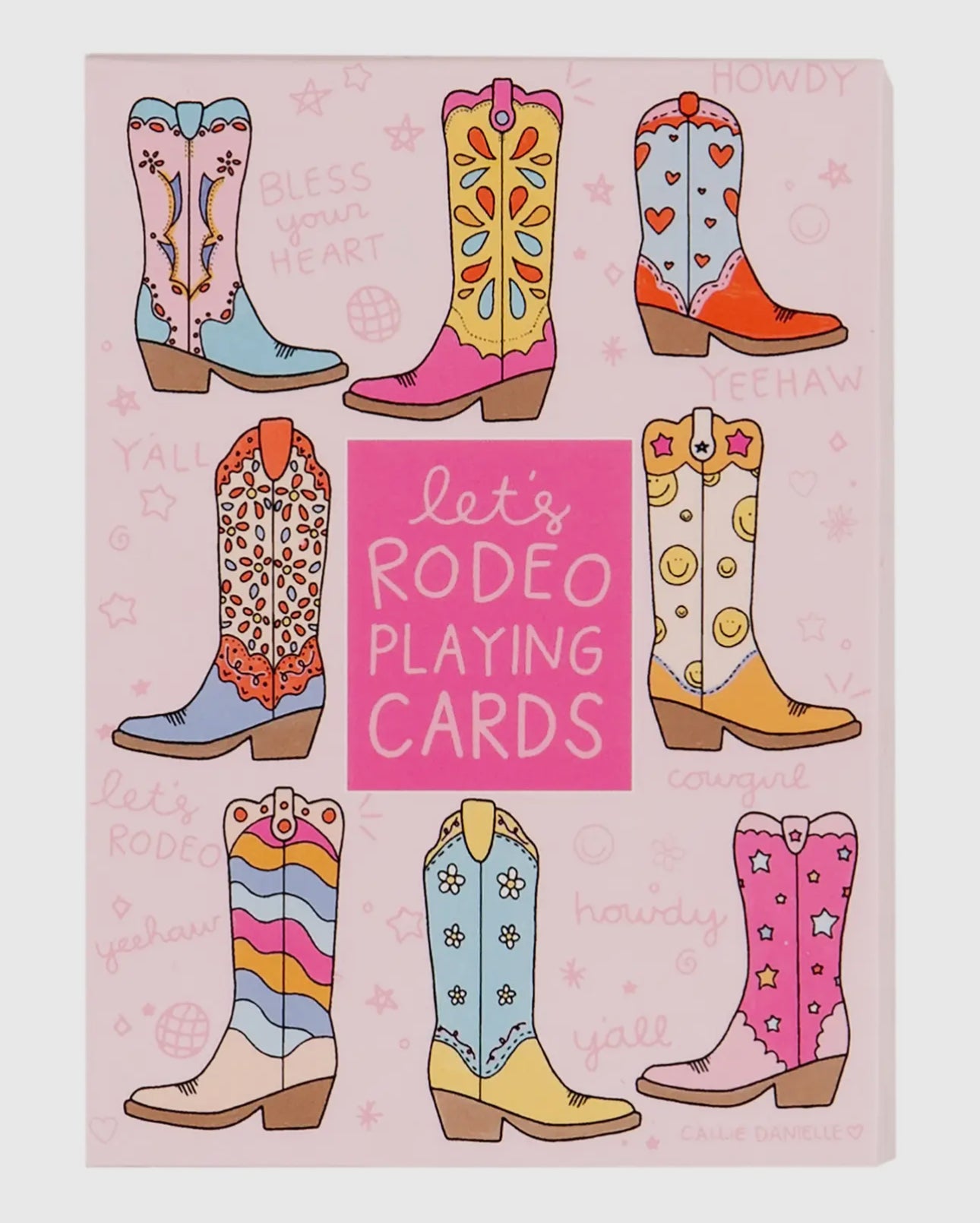 Kick your card games up a notch with our Let's Rodeo Deck of Playing Cards. Each card features hand-drawn CD cowgirl boots, adding a touch of sourthern flair to your game nights. Shuffle, play, and let the good times roll!