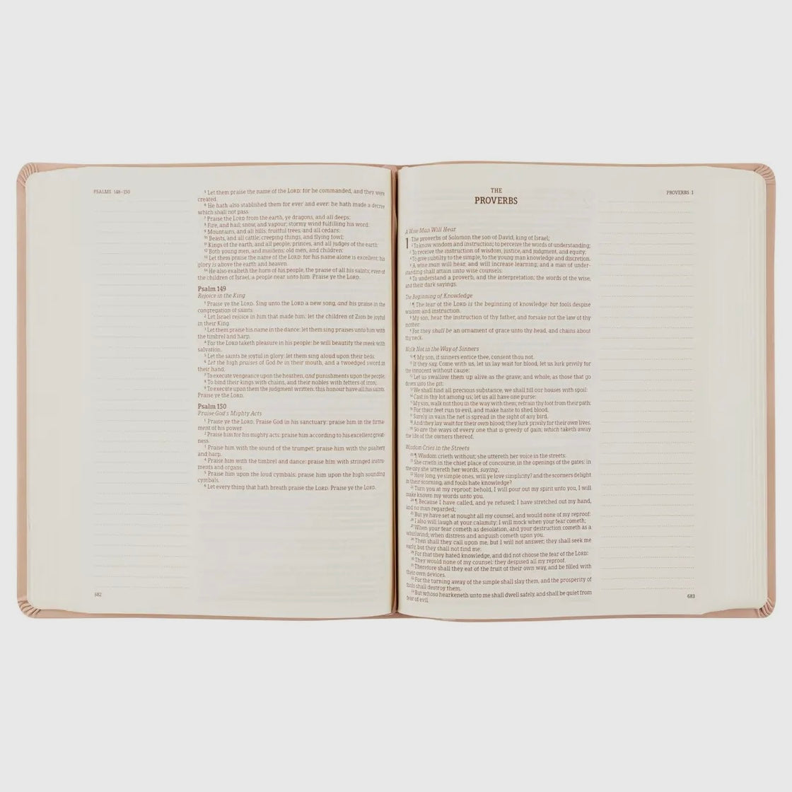 This blush pink Bible was also inspired by the rich history of the word Shiloh in Scripture. Known as a central place of worship for God’s people, we see the rich history of our Lord and his covenant with us. As we remember his work, may we find the fullness of joy in him—and life evermore!