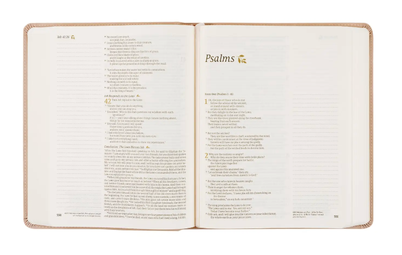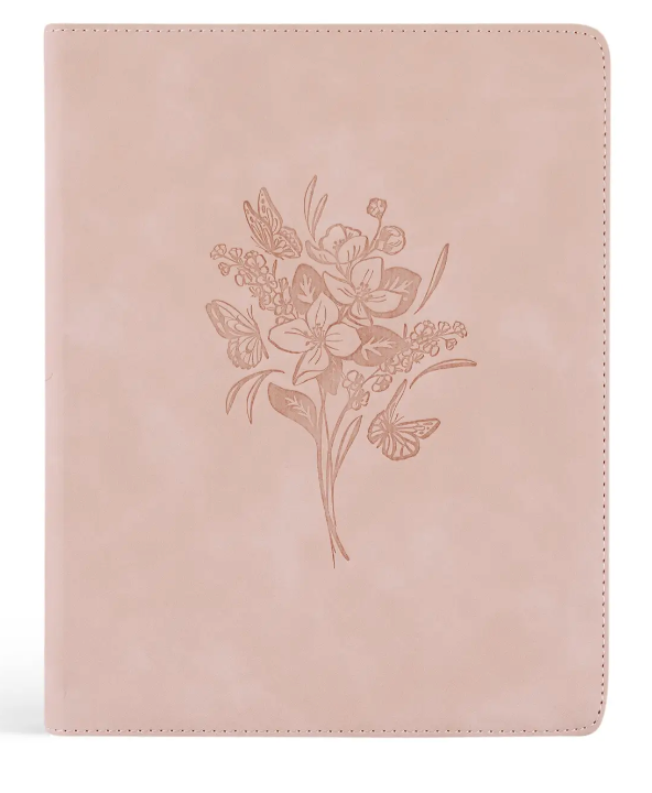 Our soft and delicate suede Shiloh Bible is inspired by the town of Shiloh in the state of Georgia, where the neighboring Callaway Gardens house the beautiful Cecil B. Day Butterfly Center. In the same way that butterflies undergo an intricate transformation to reach their full beauty, we pray this Bible works in your heart to transform you from the inside out. The back features this beautiful verse from Psalm 16:11: “You make known to me the path of life; in your presence there is fullness of joy.” As God transforms you, may the path of life become clear and your joy as a new creation continue to increase.