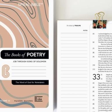 The Books of Poetry in Spiral-Bound NASB Immerse yourself in the profound wisdom and lyrical beauty of Scripture with our spiral-bound edition of the Books of Poetry, featuring the New American Standard Bible: Job, Psalms, Proverbs, Ecclesiastes, and Song of Solomon. These poetic books provide deep insights into the human experience, from the trials of suffering and the quest for wisdom to the expressions of worship and love. The NASB’s commitment to literal accuracy brings these timeless writings to life, offering a precise and meaningful encounter with God’s Word. Our spiral binding offers a superior reading experience, allowing the pages to lay flat for easy reference, note-taking, and meditation.