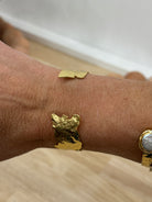 This 18k plated cuff is uniquely hammered and has an adjustable width. Its stunning appearance is also resistant to tarnishing. You’re gonna love it 😍