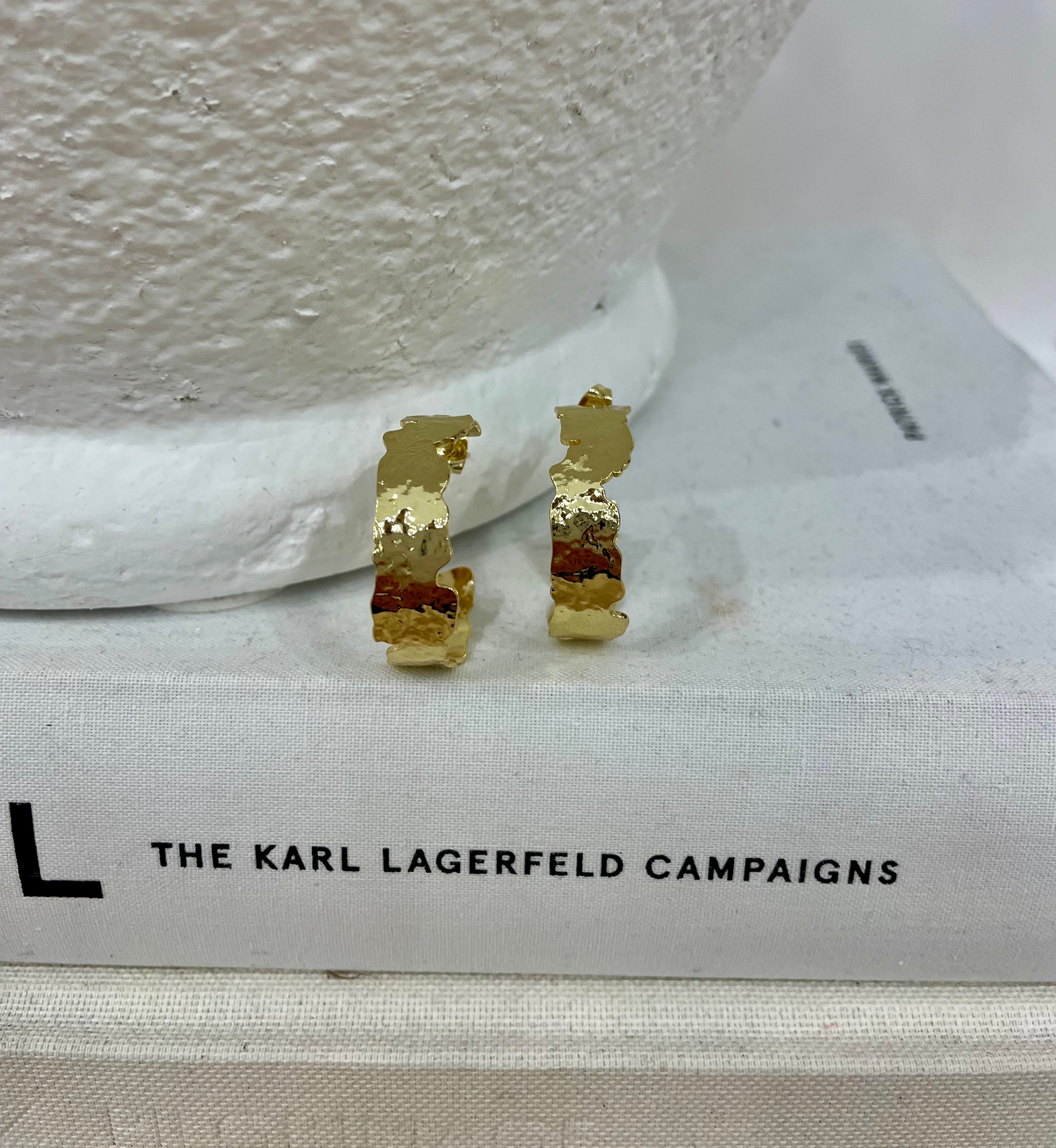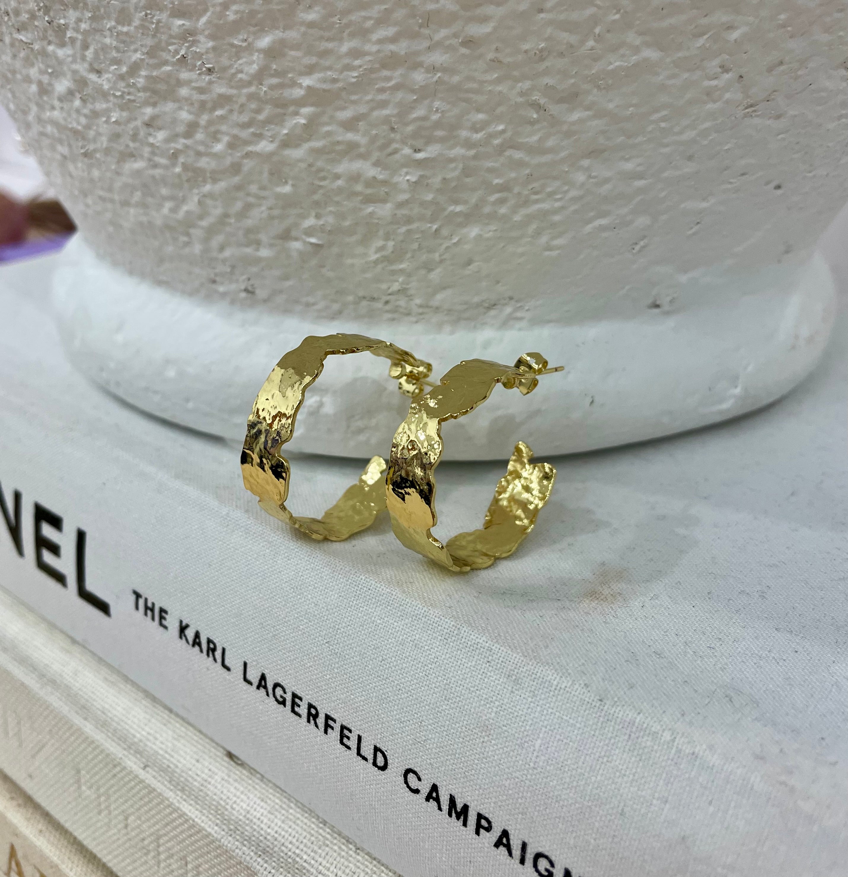 Add a touch of glam with these Hammered Gold Hoops by Hudson Day. Made with 18k plated material, these hoops are perfect for elevating any outfit. Shine on, you gold goddess!