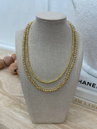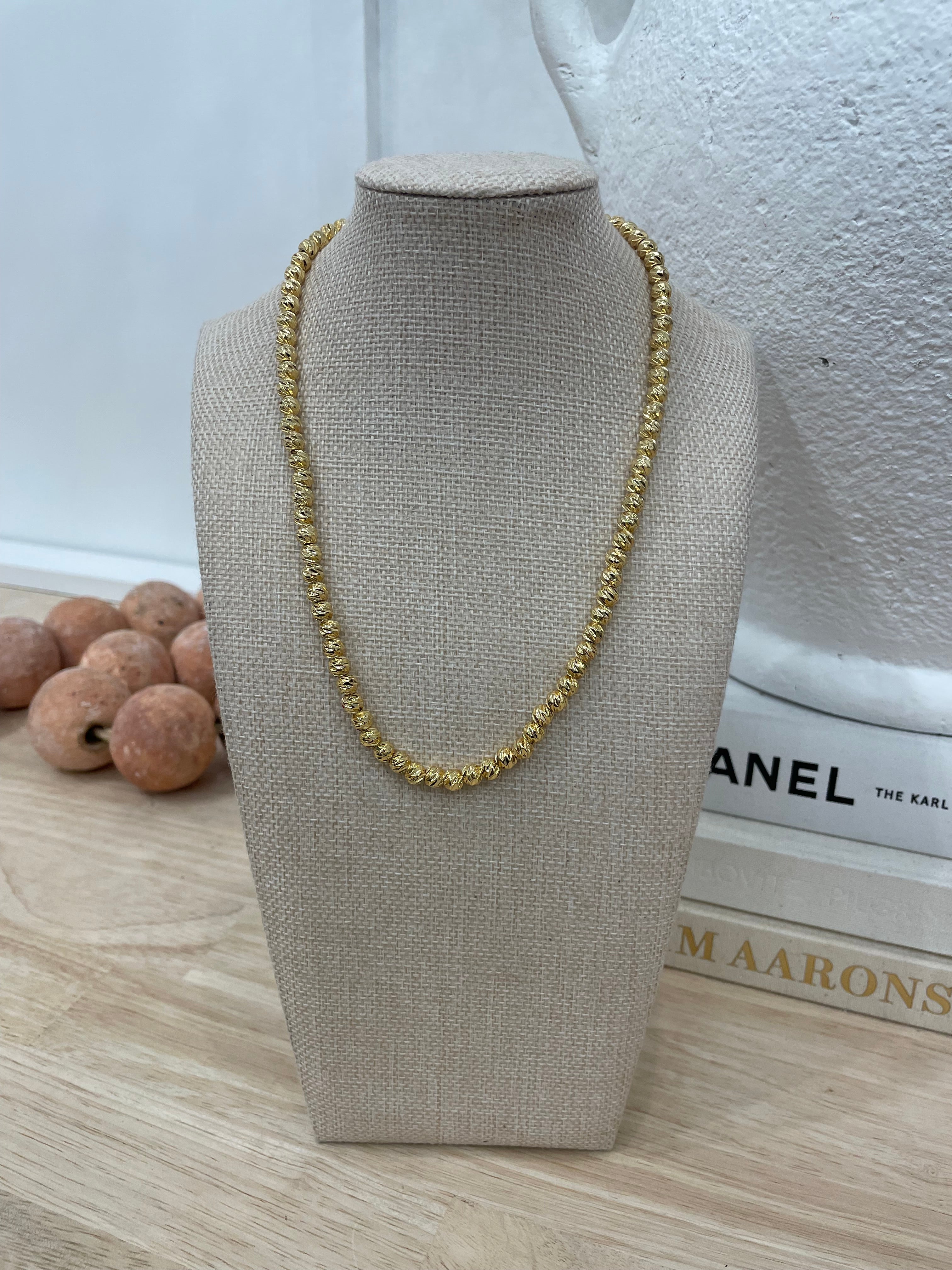 This 18 inch gold textured necklace features delicate beading for an elegant touch. Crafted with care, it adds a touch of sophistication to any outfit. Made to last, this necklace is the perfect accessory for any occasion.