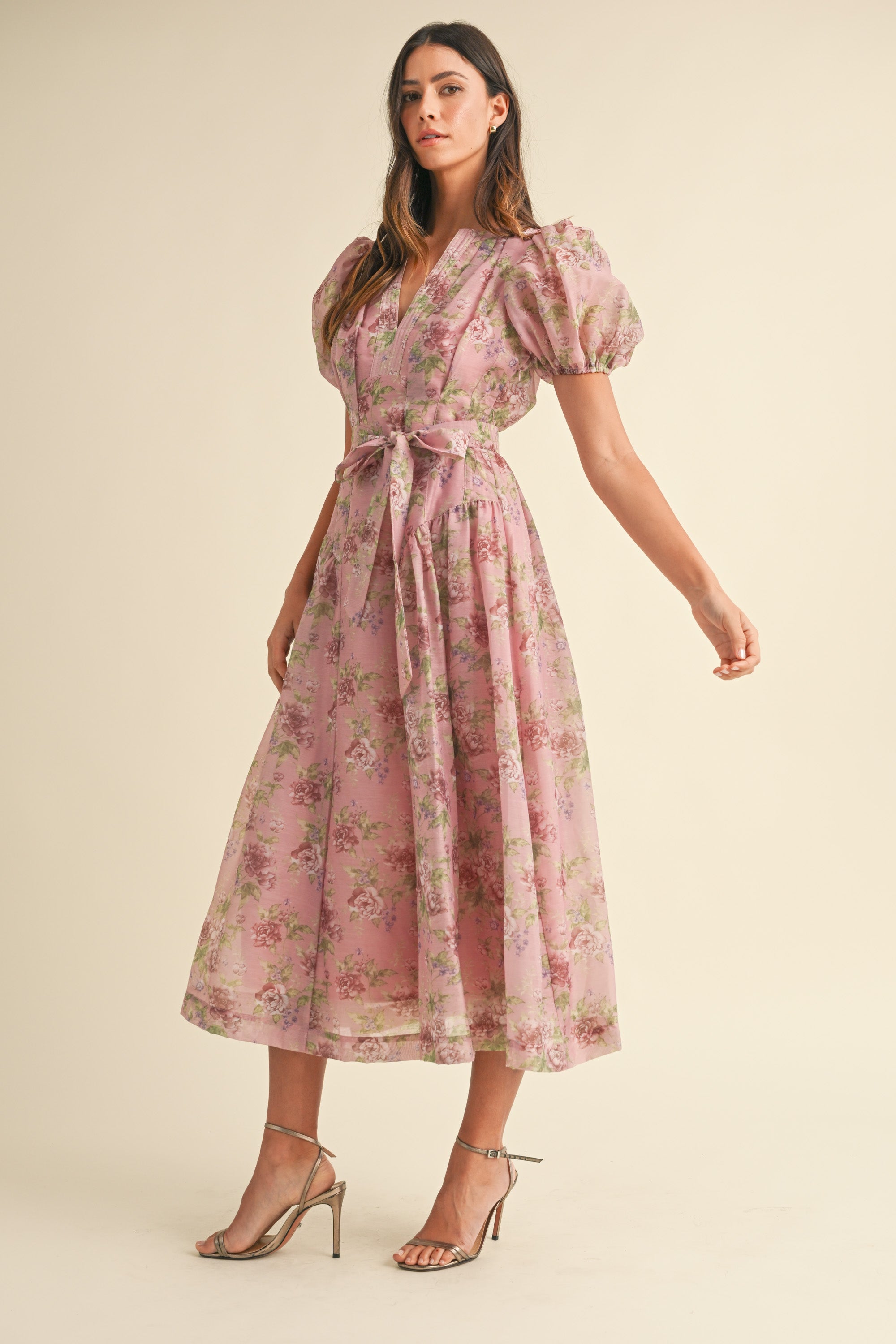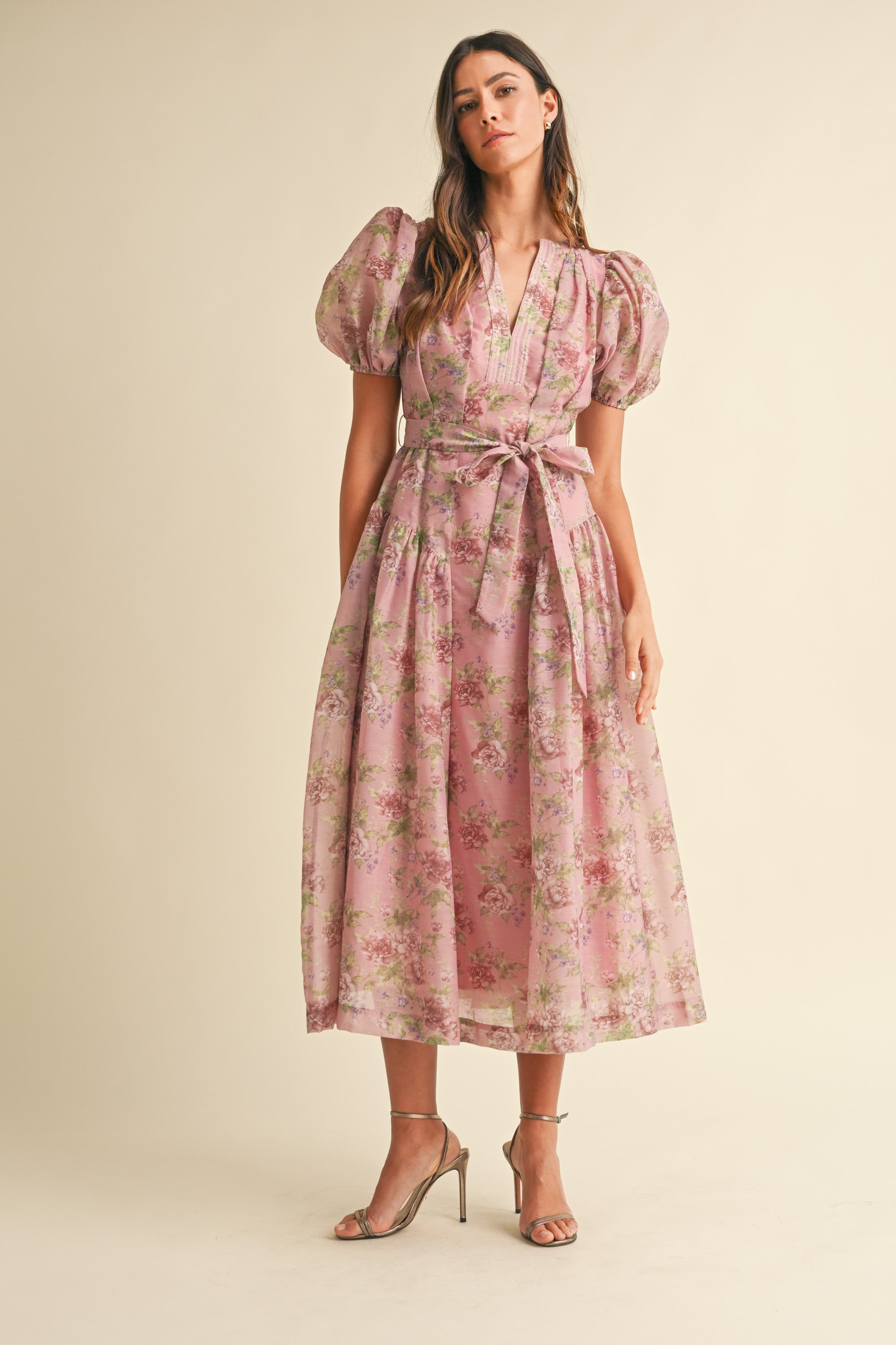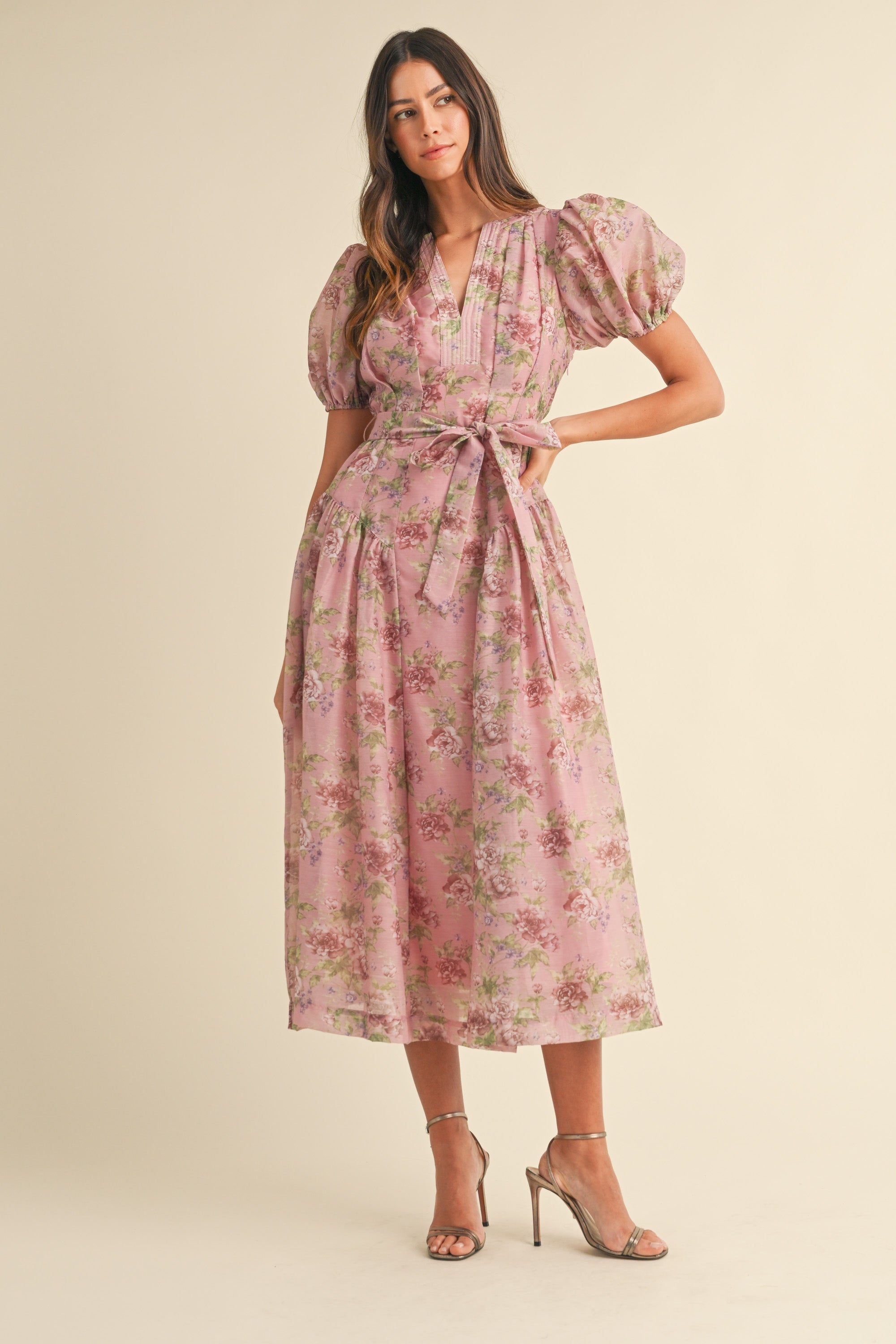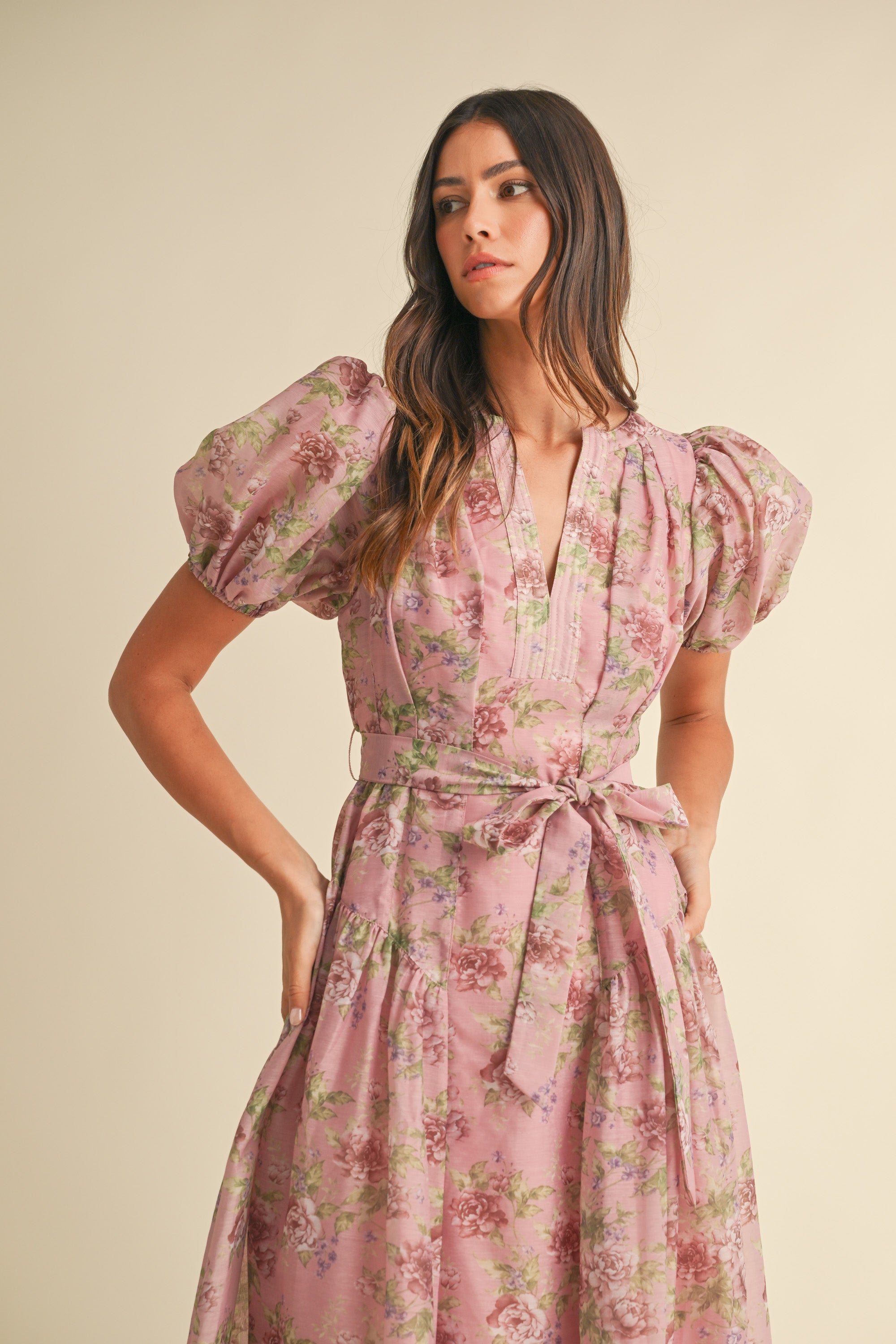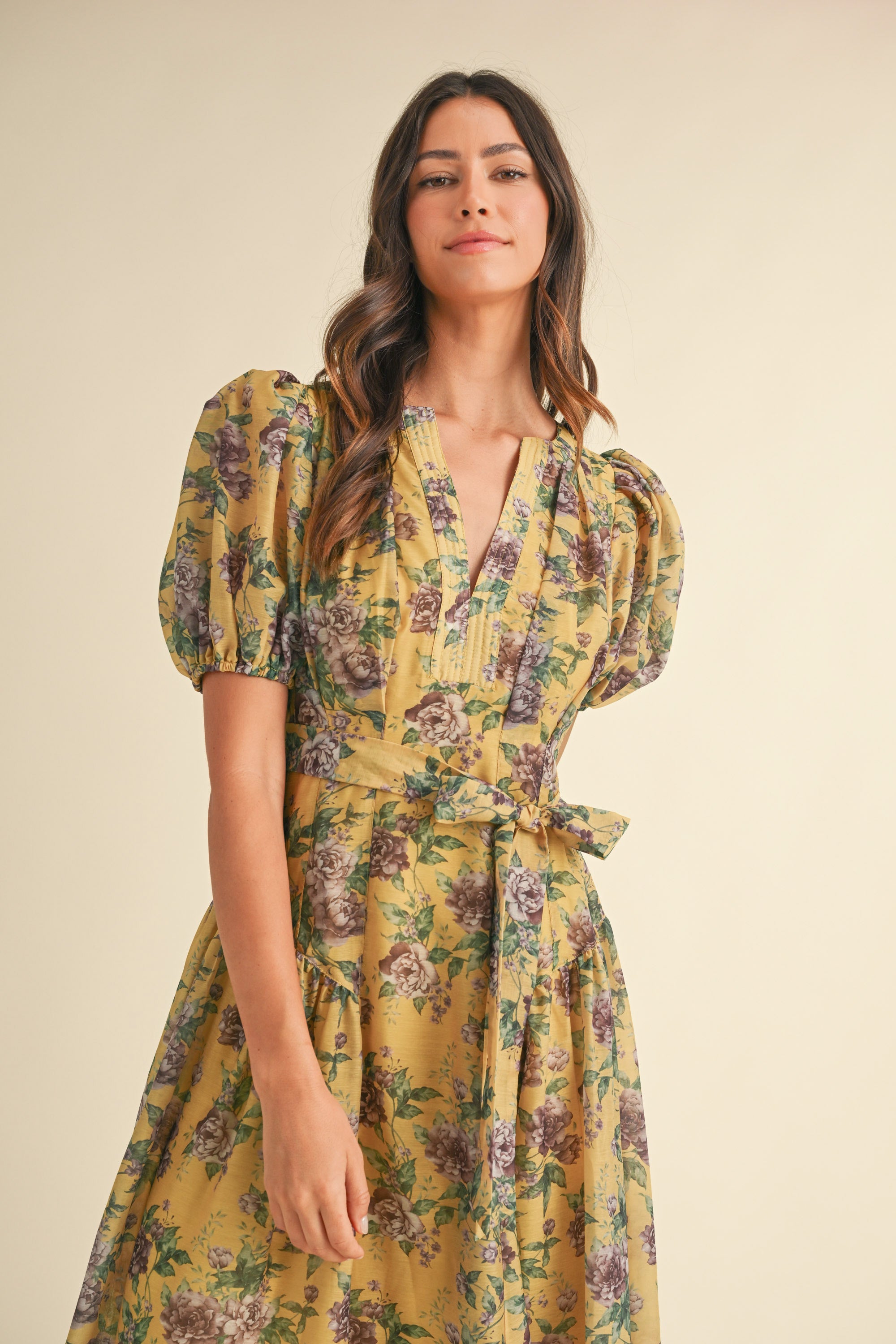 Meet the dress of your dreams: a puff sleeve, waist-belted midi wonder that wraps you in vintage romance. With a rich mustard and dusty rose palette, this floral beauty is designed to turn heads and catch hearts. The playful puff sleeves add a dash of drama, while the cinched waist gives you that hourglass silhouette. Imagine the delicate florals dancing with every step you take, creating an aura that’s both effortless and enchanting. Whether you’re strolling through a sunlit garden or on a city date night, this dress promises all eyes will be on you.
