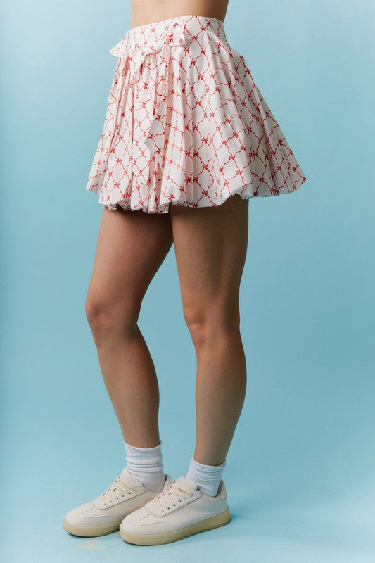 Turn up the charm with this bow-printed poplin bubble hem skirt—where feminine meets fun! Made from crisp, breathable poplin, this skirt features a flattering bubble hem for a flirty silhouette and is finished with delicate bow detailing that adds a touch of whimsy. Whether you’re dressing it up or keeping it casual, this piece brings a playful, polished vibe to any summer outfit.