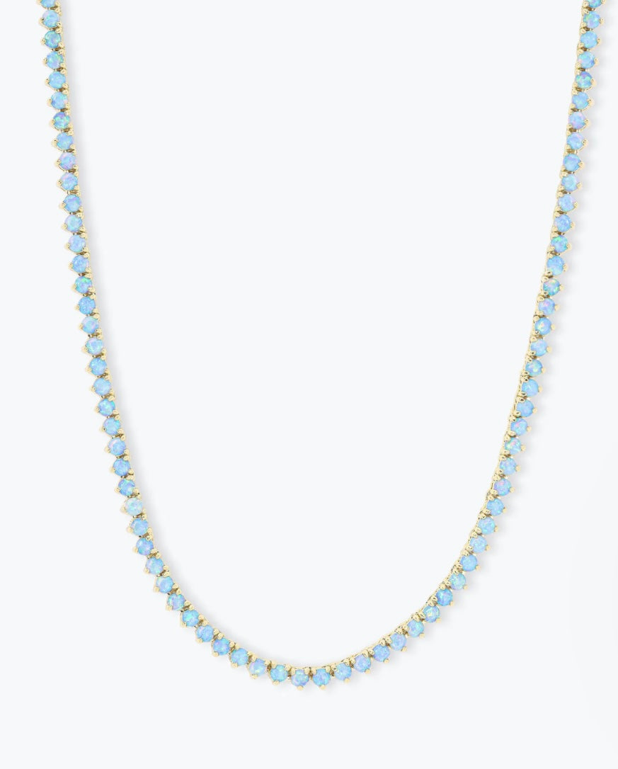 Our very best-selling tennis style just got a major dose of serotonin. With mood-boosting simulated blue opals, The Not Your Basic Blue Opal Tennis Necklace is a new take on a wear-it-forever classic.